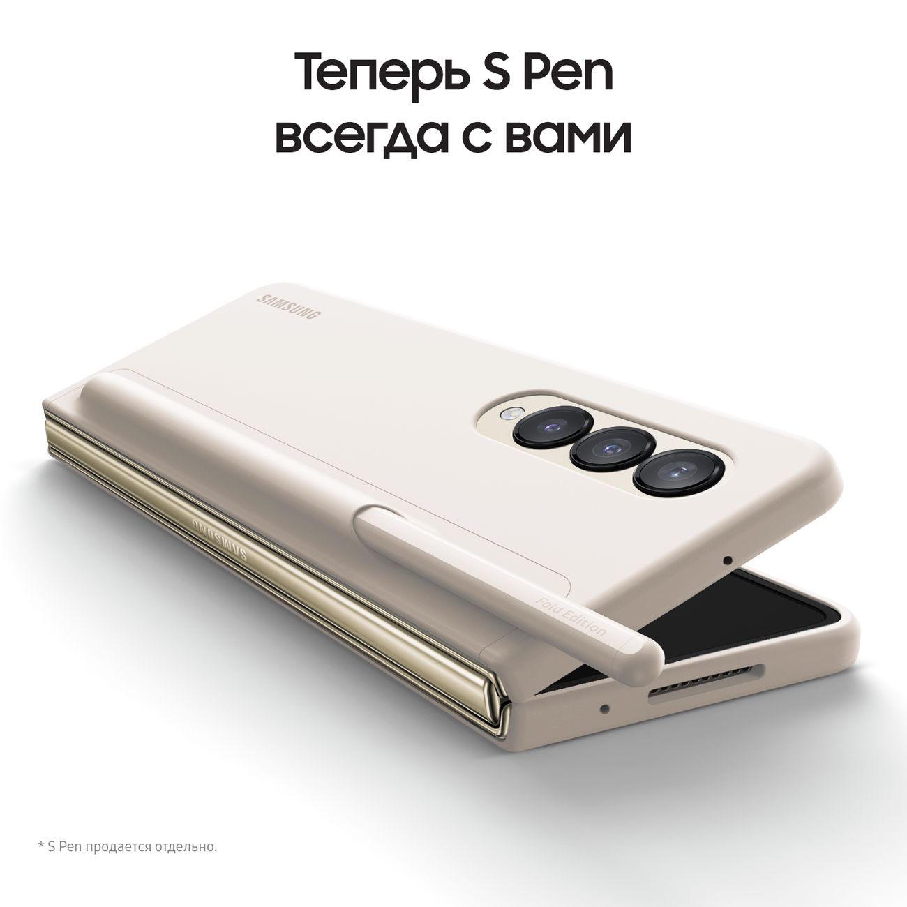Смартфон Samsung Galaxy Z Fold 4 белого цвета выполнен в раскладном металлическом корпусе со стеклянной задней панелью и оснащен 512 Гб памяти для хранения данных. Объем оперативной памяти — 12 Гб. Корпус устройства защищен от попадания влаги и пыли по классу IPX8.