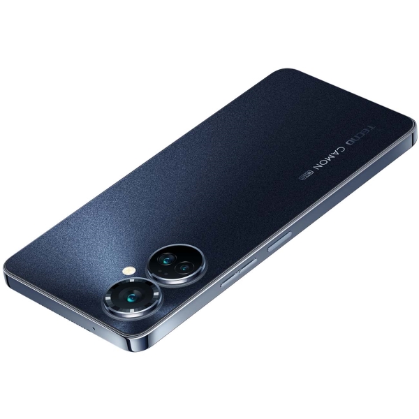 Смартфон Tecno Camon 19 Pro Eco Black оснащен 6,78-дюймовым сенсорным экраном с разрешением 1080х2460 пикселей, выполненным по технологии IPS. Корпус произведен из пластика и окрашен в синий цвет. Толщина боковых рамок всего 0,98 мм. Грани у корпуса — плоские, задняя крышка обладает декоративным покрытием. Модель выполняет свои функции на базе ОС Android 12. В основе аппарата лежит восьмиядерный процессор от Mediatek с частотой 2,05 ГГц. Устройство получило 8 Гб оперативной памяти, накопитель на 128 Гб с возможностью увеличения картой microSD до 256 Гб.