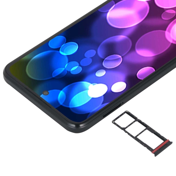 Девайс в пластиковом корпусе с оригинальным оформлением (имитация камня, расколотого на многоугольники) оснащен IPS-экраном диагональю 6,82 дюйма. Дисплей с частотой обновления до 90 Гц поддерживает вывод контрастных изображений разрешением HD+. Микрофон и двойные стереодинамики с шумоподавлением обеспечивают общение по телефонной связи, видеосвязи. Встроенный аппаратный гироскоп отвечает за высокую точность прицеливания во время игр.