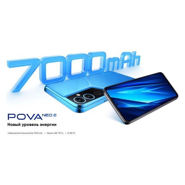 Смартфон Tecno Pova Neo 2 Cyber Blue со слотом для двух nanoSIM-карт работает в сетях 2G, 3G, 4G LTE. Размер оперативной памяти девайса — 4 Гб, встроенной — 64 Гб. Для расширения памяти предусмотрен разъем для карты microSD емкостью до 124 Гб. Производительность системы обеспечивает восьмиядерный процессор MediaTek Helio G85 с высокой вычислительной способностью, поддержкой современных игр и приложений. В тандеме с операционной системой HiOS 8.6, основанной на Android 12, он защищает данные от вирусов и нежелательных программ.