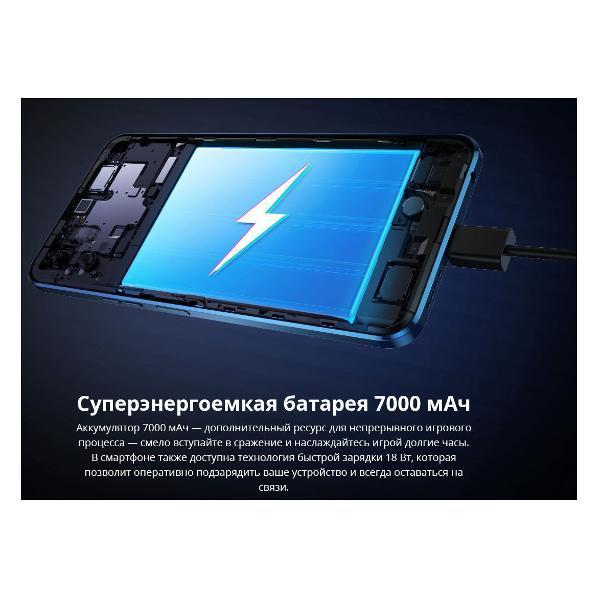 В корпус устройства встроены стереодинамики и микрофон для связи. Основная камера с сенсором 16 Мп и объективом f/1,85 дополнена двойной светодиодной вспышкой. Блок позволяет снимать фото и видео Full HD. Поддерживаемые режимы съемки — макро, панорамная, HDR, широкоугольная. Фронтальный модуль 8 Мп оснащен вспышкой. Аккумулятор емкостью 7000 мА*ч с интеллектуальной технологией энергосбережения поддерживает быструю зарядку выходной мощностью 18 Вт.