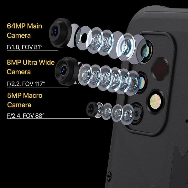 Смартфон габаритами 172,2х83,9х12.9 мм выполнен в корпусе из композитного материала, защищенном по стандартам IP68, IP69K и MIL-STD-810G. Емкостный сенсорный IPS-экран диагональю 6,5 дюйма с разверткой 90 Гц воспроизводит изображения разрешением 2400х1080 пикселей. Двойной микрофон и динамик поддерживают двустороннюю голосовую связь.