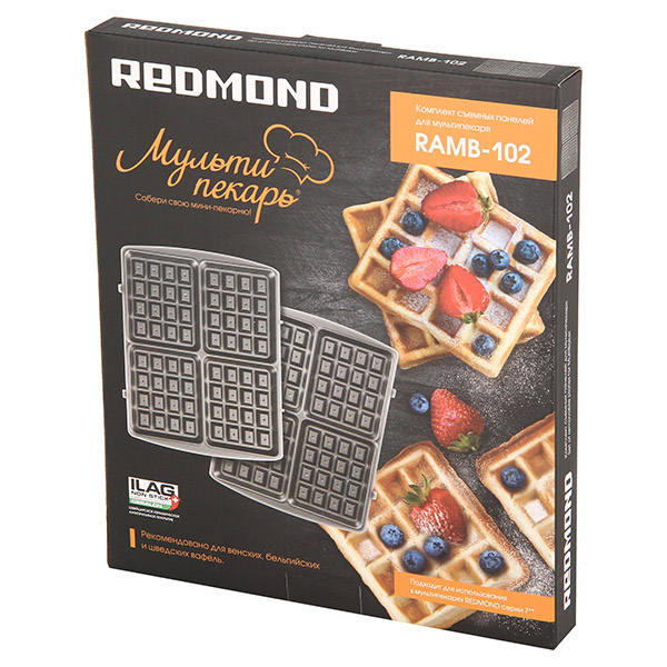 Redmond RAMB-102 – комплект сменных панелей, предназначенных для использования с мультипекарем Redmond. Они легко устанавливаются в устройство и позволяют готовить венские, шведские или бельгийские вафли по различным рецептам: как сладкие, так и закусочные, без сахара. С их помощью можно с минимальными затратами времени получить сытный завтрак или оригинальный десерт либо накормить неожиданных гостей.