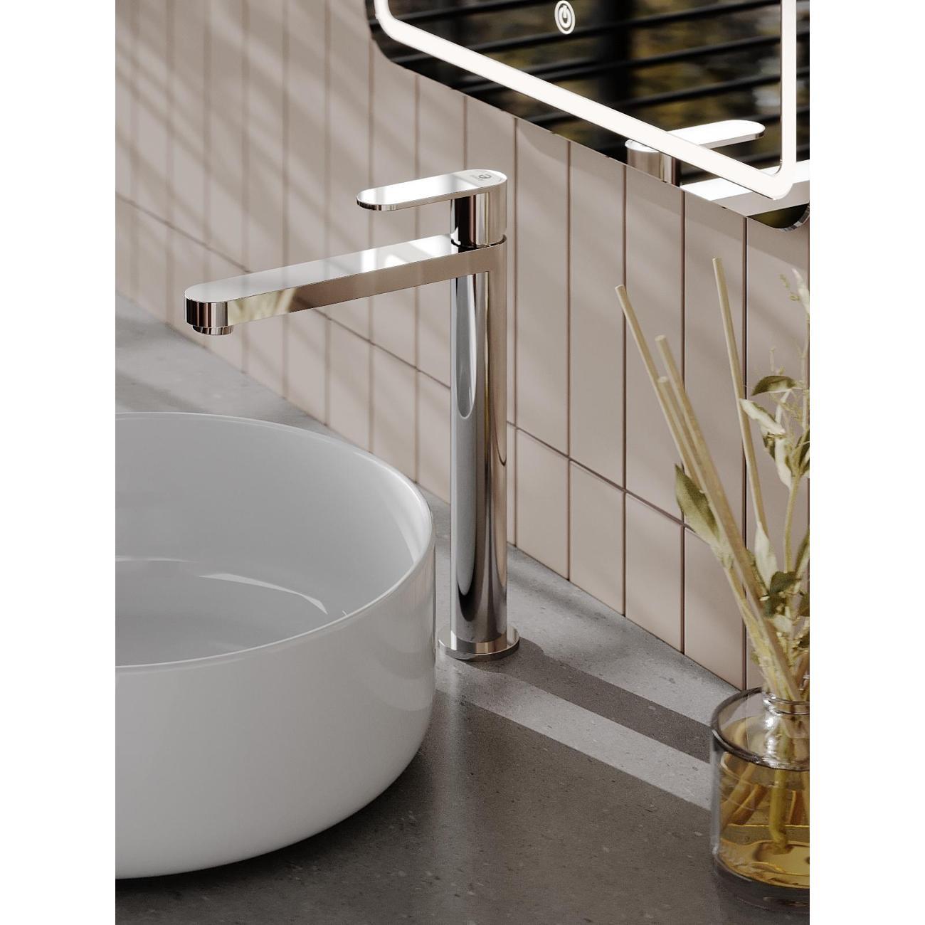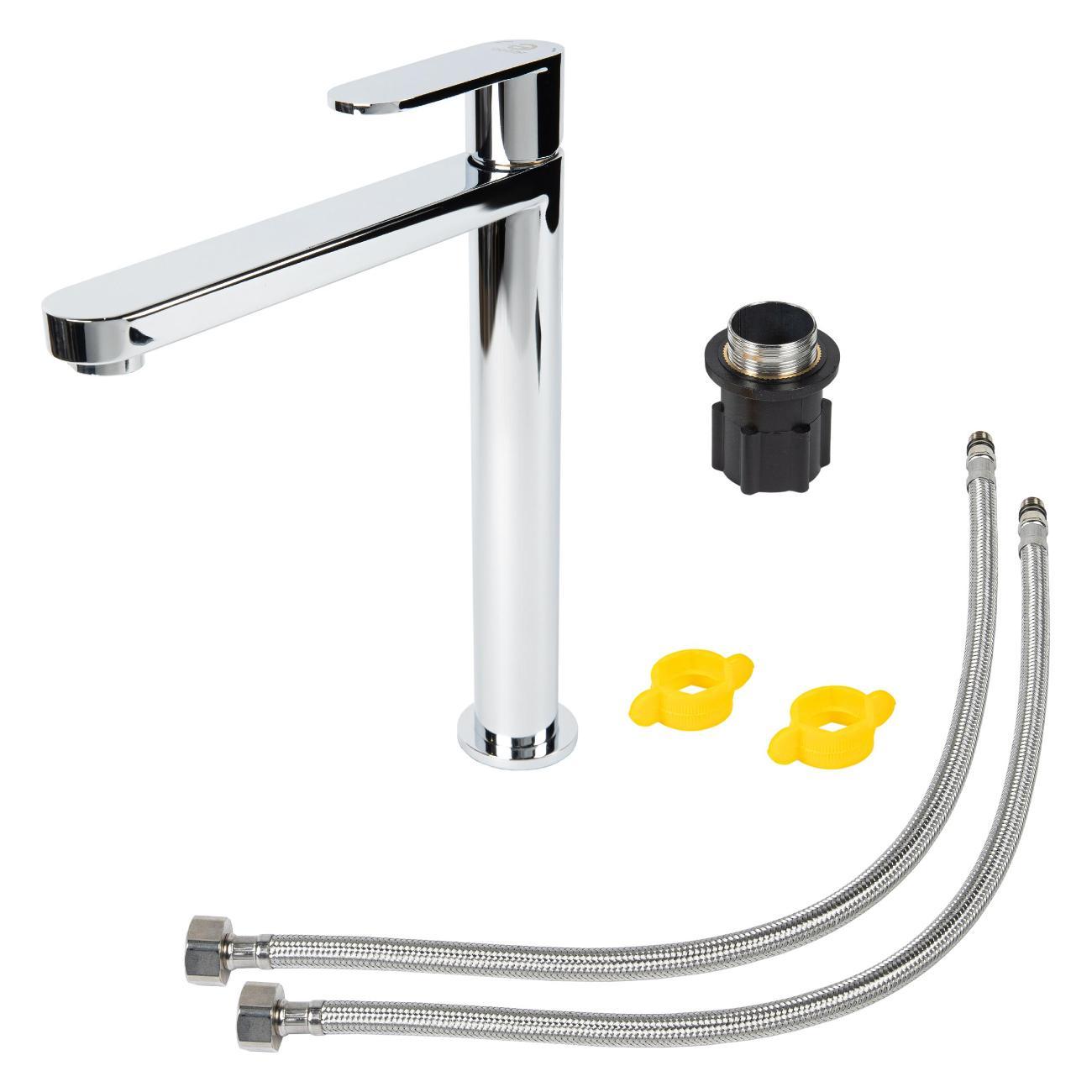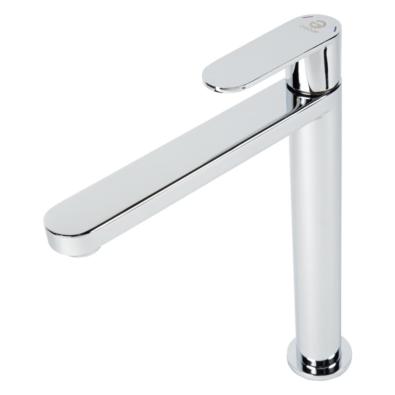 Однозахватный высокий смеситель для накладной раковины Agger Sweet с фиксированным изливом отличается четкими линиями и дизайном в стиле минимализм, он гармонично дополнит интерьер ванной комнаты в современном стиле. Фирменный керамический картридж Agger и эргономичный рычаг делают легким управление напором и температурой воды. Корпус изделия изготовлен из высококачественной нержавеющей стали, не подверженной коррозии от длительного контакта с водой. Износостойкое покрытие в цвете глянцевый хром, за которым очень просто ухаживать мягкой салфеткой, обеспечит блеск на долгие годы. Встроенный аэратор экономит воду и, обогащая струю воздухом, делает ее мягкой без брызг. Гибкая подводка 50 см.