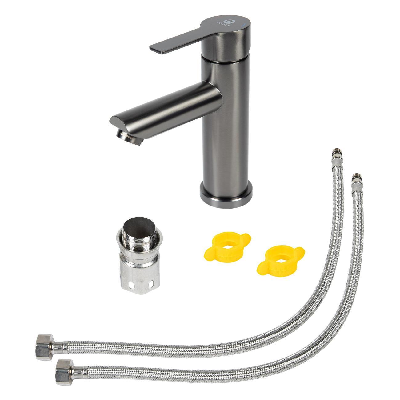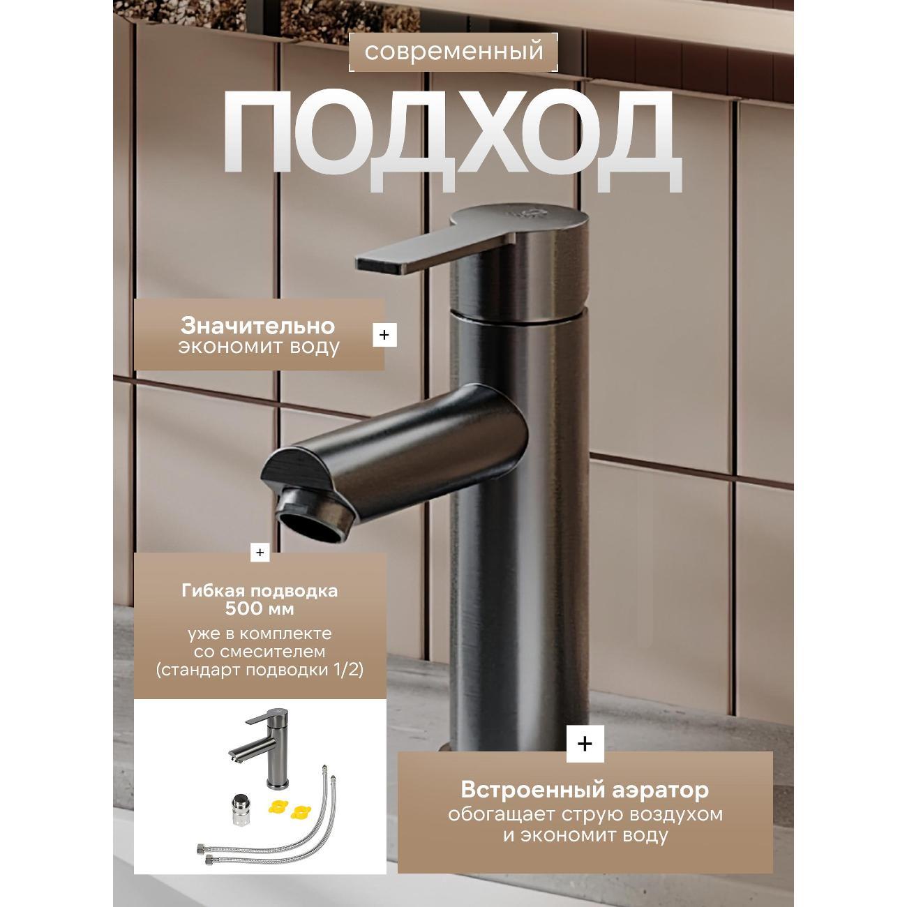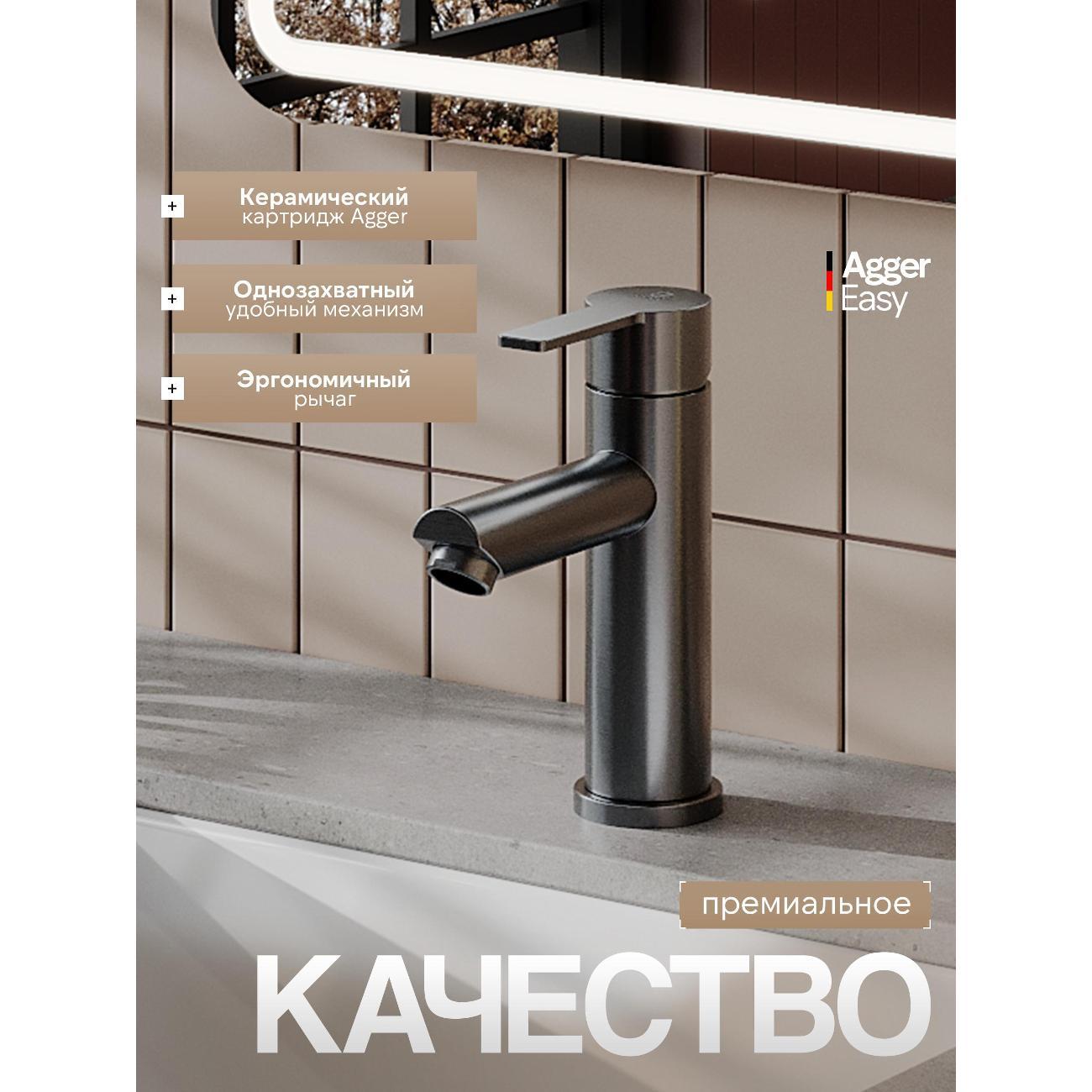 Однозахватный смеситель для раковины Agger Easy с фиксированным изливом гармонично дополнит интерьер ванной комнаты в современном или традиционном стиле. Фирменный керамический картридж Agger и эргономичный рычаг делают легким управление напором и температурой воды. Корпус изделия изготовлен из высококачественной нержавеющей стали, не подверженной коррозии от длительного контакта с водой. Износостойкое покрытие в цвете матовая оружейная сталь, за которым очень просто ухаживать мягкой салфеткой, нанесено методом вакуумного напыления. Встроенный аэратор экономит воду и, обогащая струю воздухом, делает ее мягкой без брызг. Гибкая подводка 50 см.