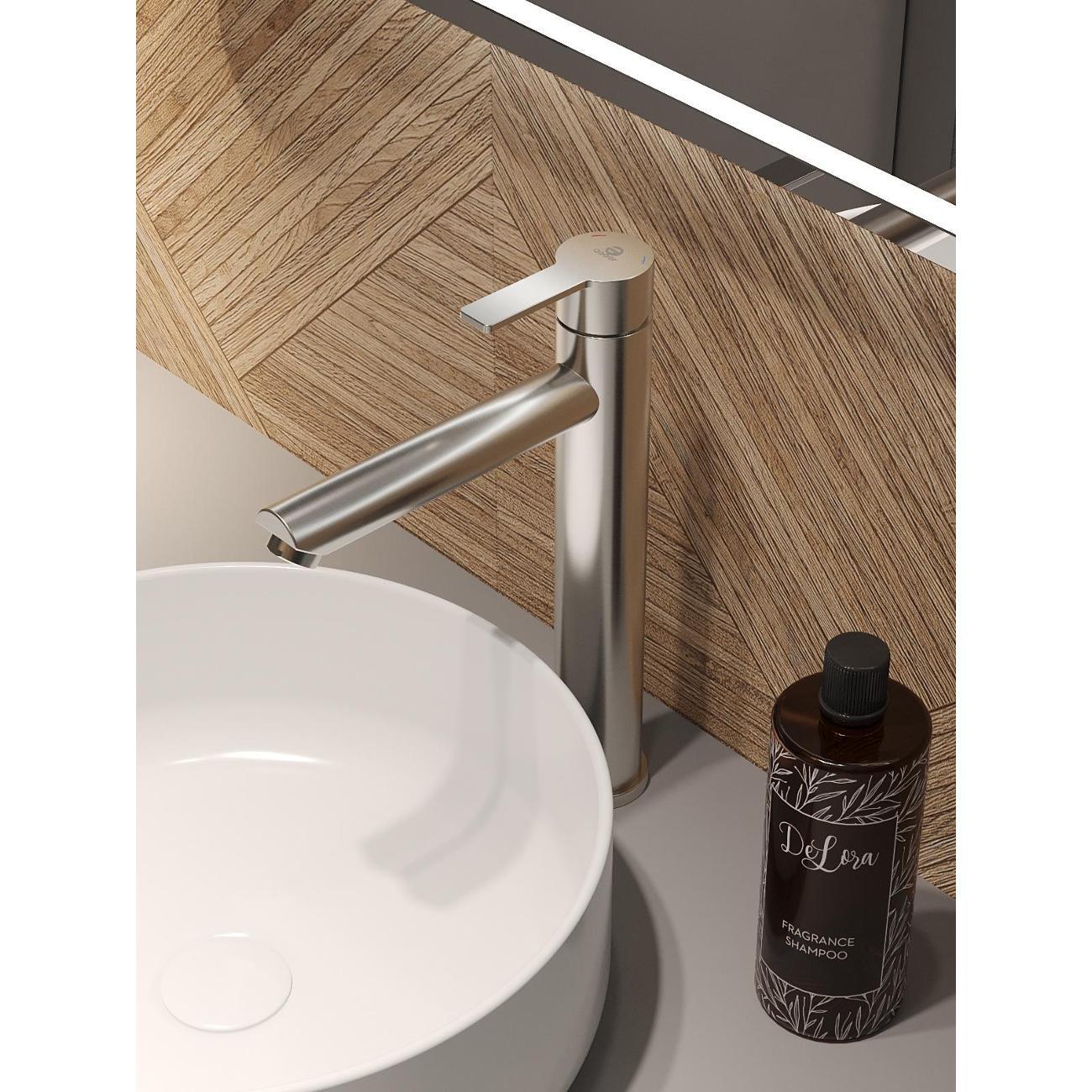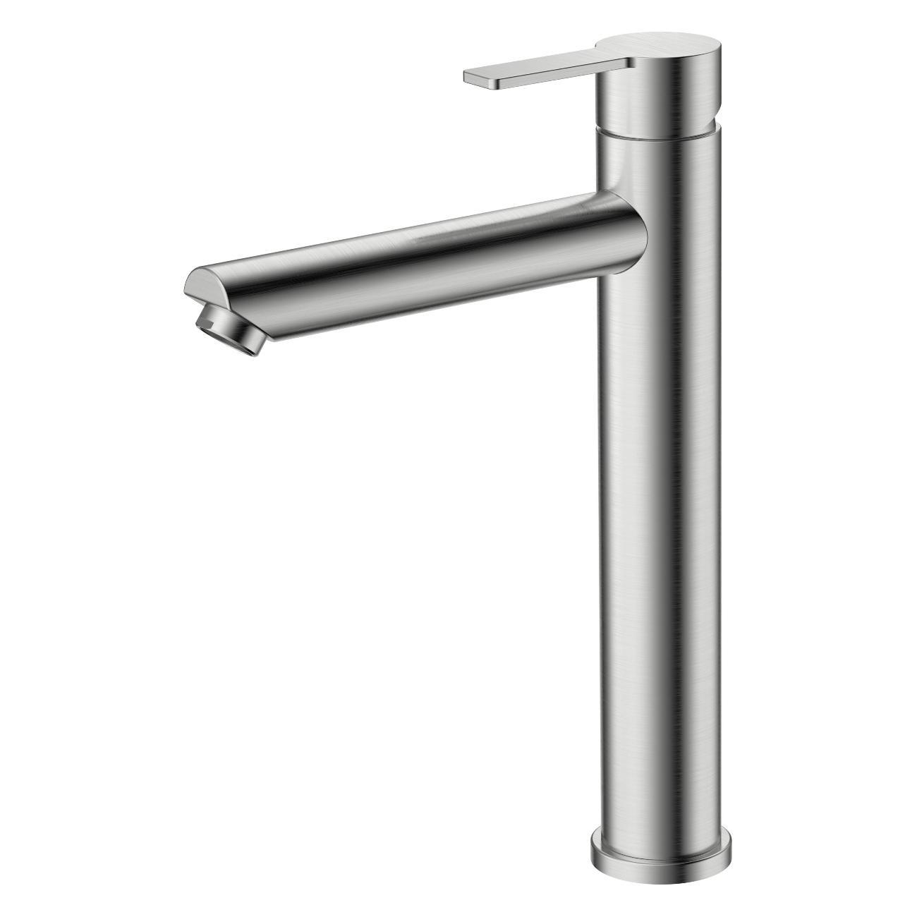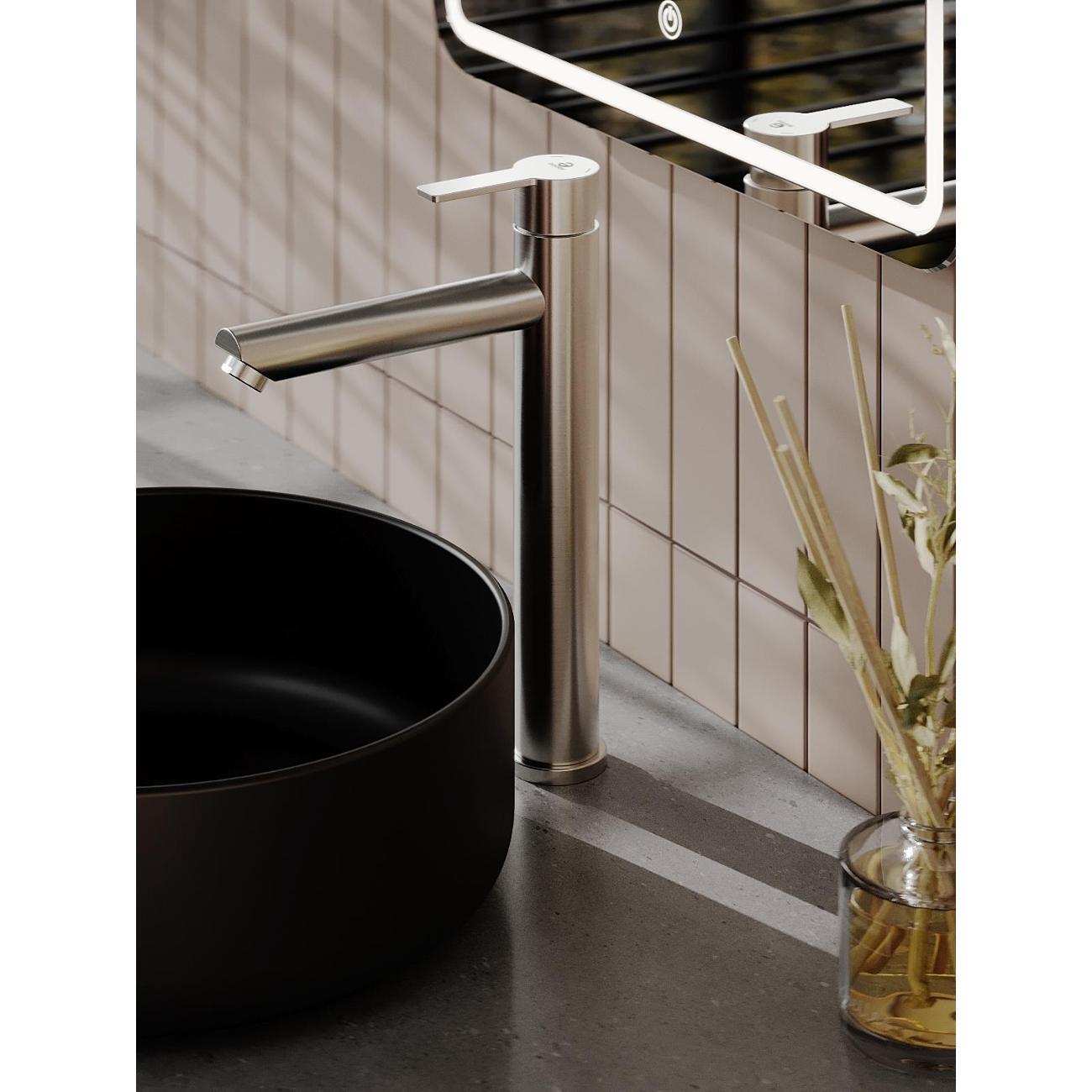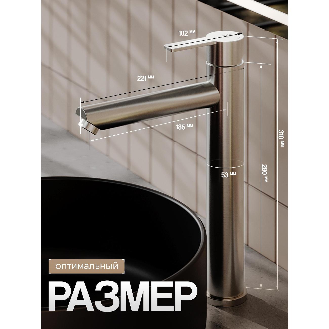 Однозахватный высокий смеситель для накладной раковины Agger Easy с фиксированным изливом гармонично дополнит интерьер ванной комнаты в современном или традиционном стиле. Фирменный керамический картридж Agger и эргономичный рычаг делают легким управление напором и температурой воды. Корпус изделия изготовлен из высококачественной нержавеющей стали, не подверженной коррозии от длительного контакта с водой. Износостойкое покрытие в цвете матовый сатин, за которым очень просто ухаживать мягкой салфеткой, нанесено методом вакуумного напыления. Встроенный аэратор экономит воду и, обогащая струю воздухом, делает ее мягкой без брызг. Гибкая подводка 50 см.