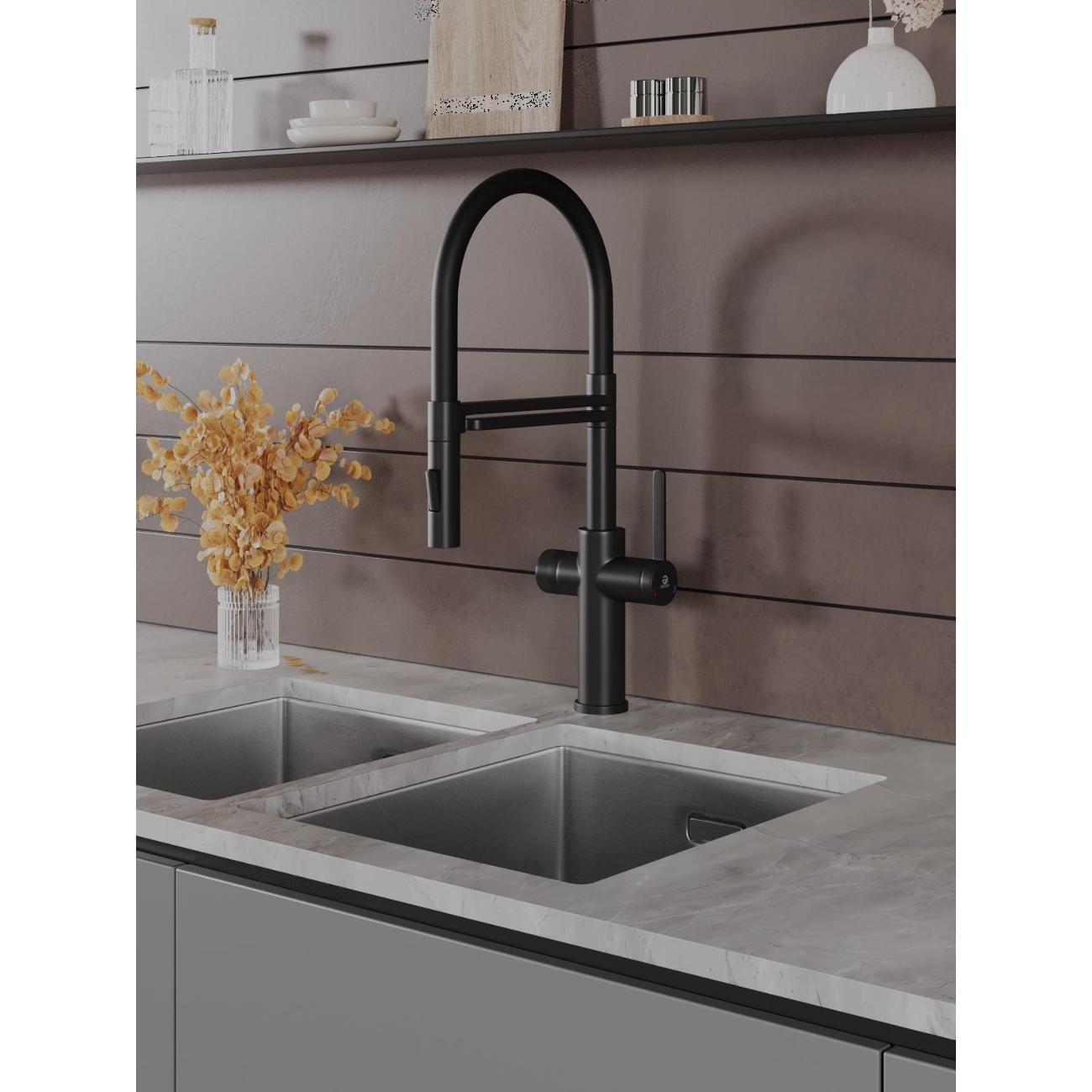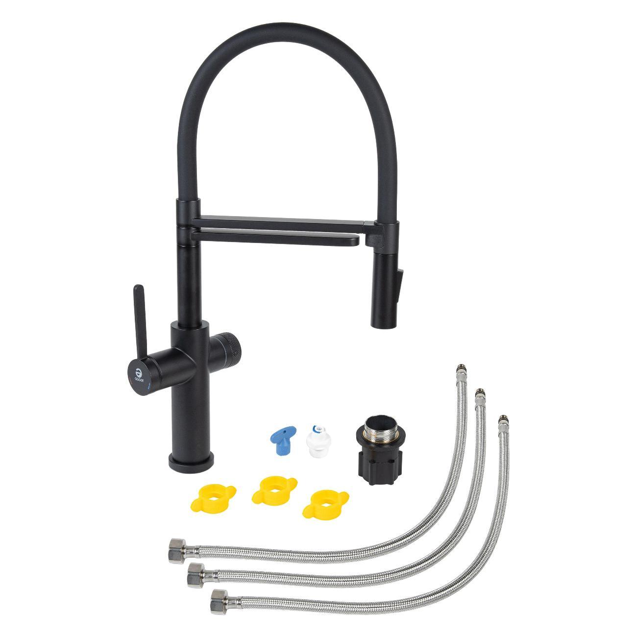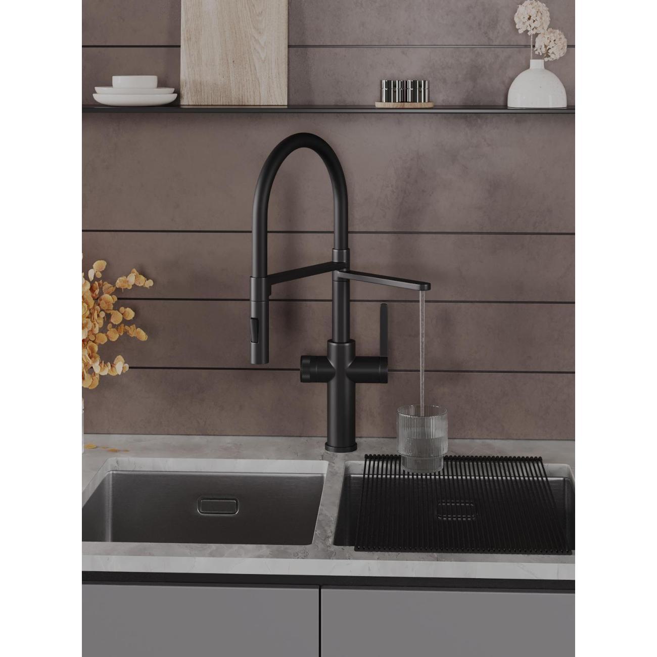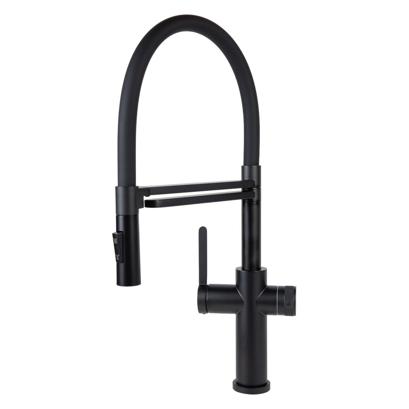 Однозахватный смеситель для кухни с гибким поворотным изливом Agger Elegant с возможностью подключения фильтра – эргономичное решение для тех, кто заботится о своем здоровье и здоровье близких. Фирменный керамический картридж Agger и эргономичный рычаг делают легким управление напором и температурой воды. Корпус изделия изготовлен из высококачественной нержавеющей стали, не подверженной коррозии от длительного контакта с водой. Покрытие в цвете матовый черный, за которым просто ухаживать мягкой салфеткой, нанесено методом порошковой окраски с многоступенчатой системой подготовки и высокотемпературной обработкой. Встроенный аэратор Neoperl экономит воду и, обогащая струю воздухом, делает ее мягкой без брызг. Смеситель оснащен гибким изливом (2 режима струи), что упростит мытье посуды и гигиеническую уборку мойки. В комплекте гибкая подводка (600 мм). Стандарт подводки - 1/2. Гарантия 5 лет.