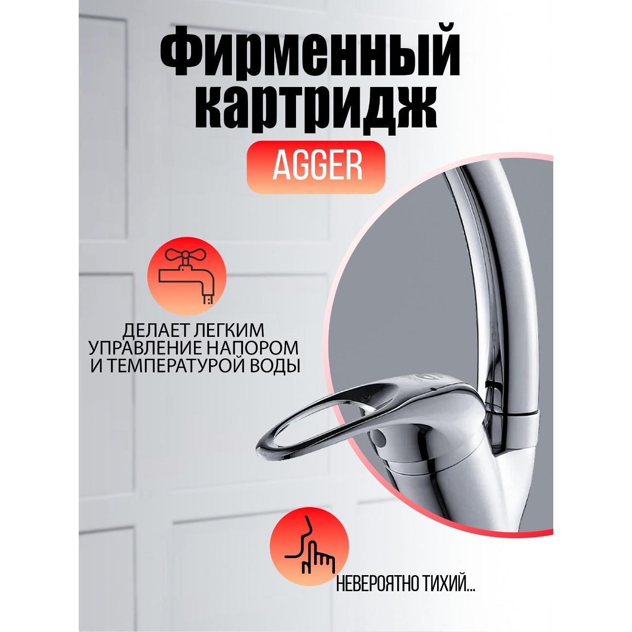 Однозахватный кухонный смеситель с поворотным изливом Agger Move гармонично дополнит интерьер в традиционном и современном стиле. Выполнен из латунного сплава с повышенным содержанием меди. Фирменный картридж Agger делает лёгким управление напором и температурой воды. Хромированное покрытие, за которым очень просто ухаживать мягкой салфеткой, обеспечивает блеск на долгие годы. Аэратор экономит воду и, обогащая струю воздухом, делает её мягкой и без брызг. Длина и высота поворотного излива позволяют комфортно мыть посуду, не задевая мойку.