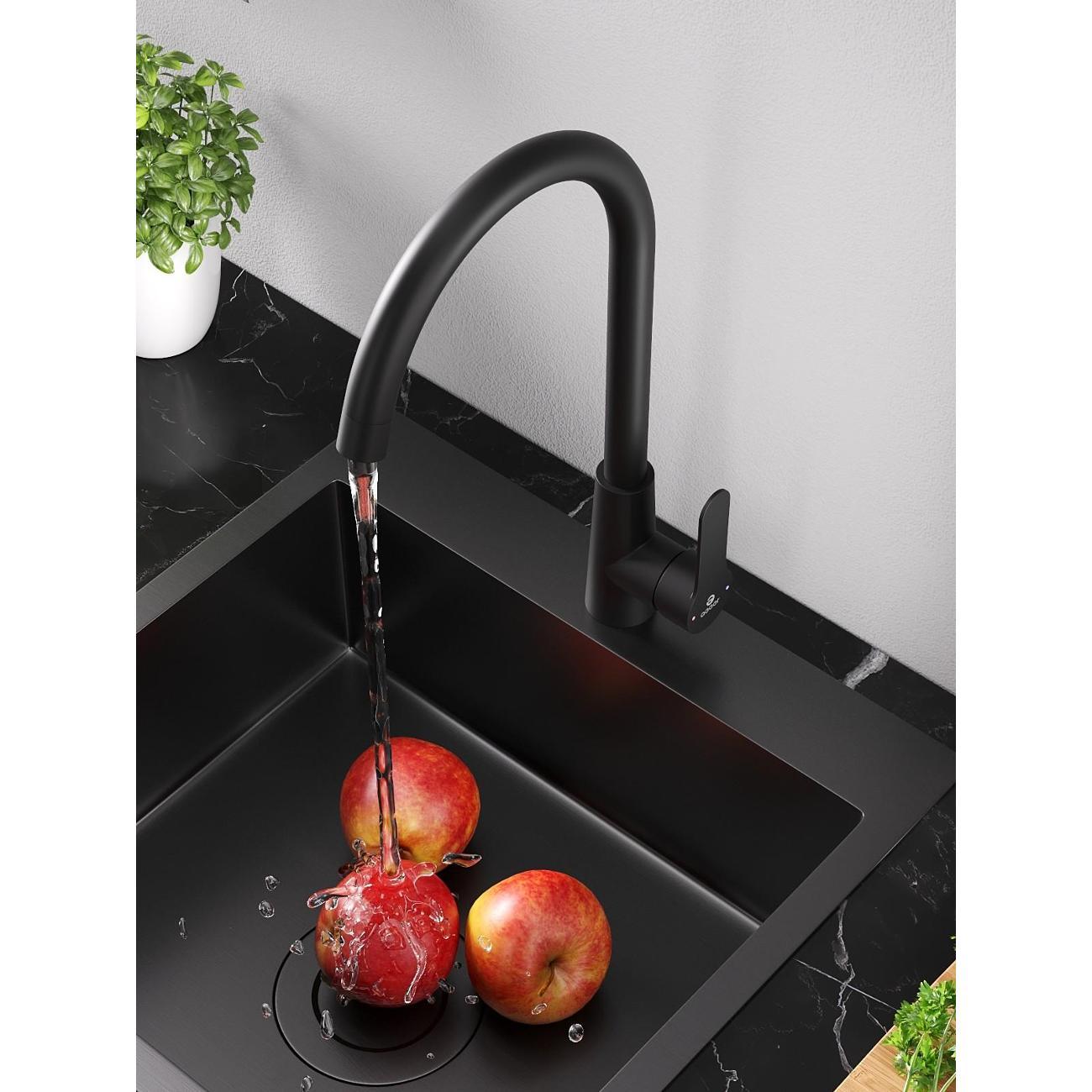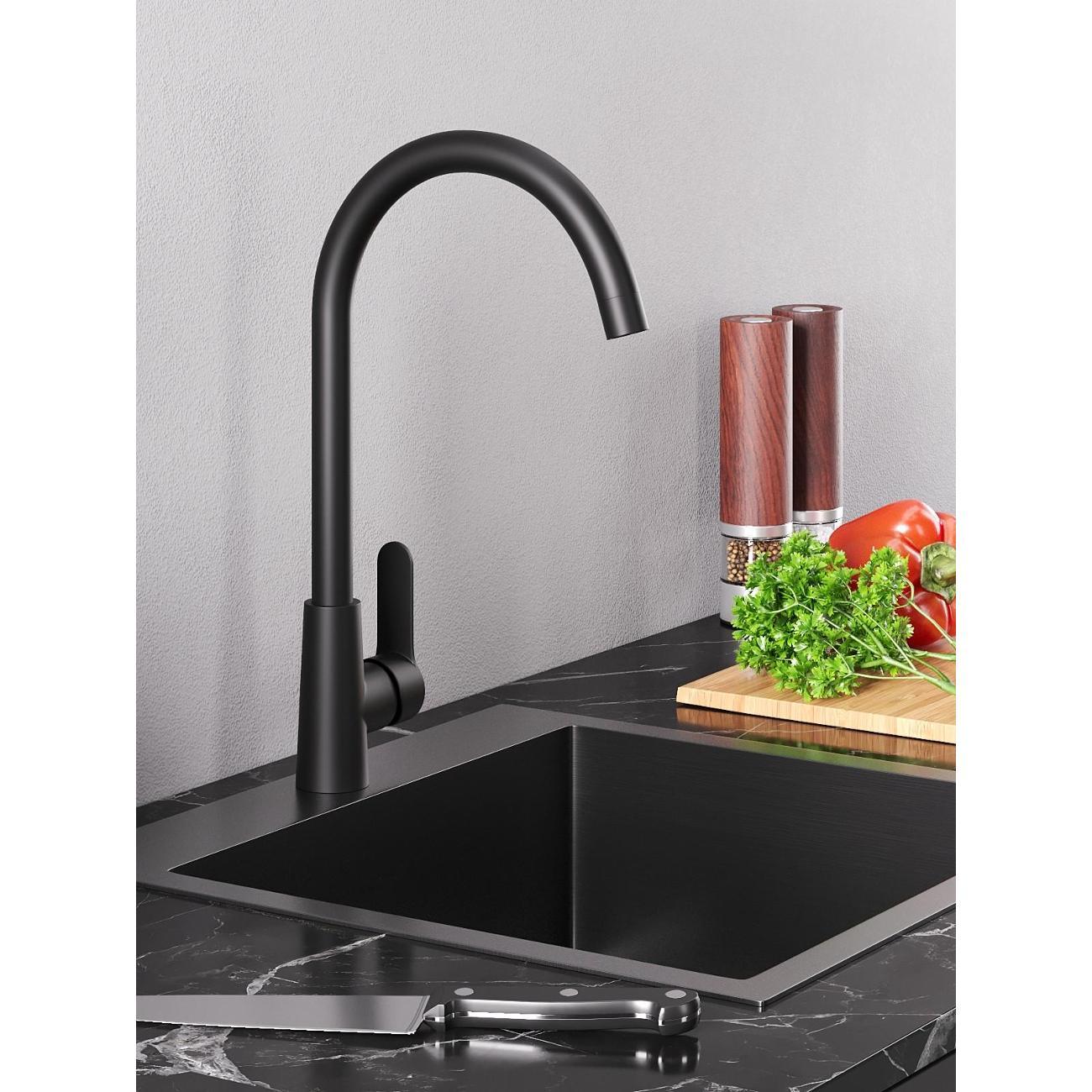 Однозахватный смеситель для кухни с поворотным изливом Agger Splendid - эргономичное решение для современной кухни. Выполнен из латунного сплава с повышенным содержанием меди. Фирменный картридж Agger обеспечит легкое управление напором и температурой воды. Модное на сегодняшний день покрытие в цвете матовый черный, за которым просто ухаживать мягкой салфеткой, нанесено методом порошковой окраски с многоступенчатой системой подготовки и высокотемпературной обработкой. Аэратор экономит воду и, обогащая воду воздухом, делает струю мягкой и без брызг.