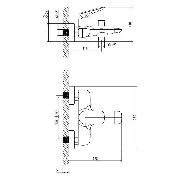 Смеситель для ванны и душа AQUAme Como представлен в трех цветах. Изготовленный из прочной латуни, смеситель гарантирует долговечность и надежность на протяжении многих лет. Внутри него скрыт керамический картридж с повышенным ресурсом, что обеспечивает плавное и точное управление напором и температурой воды. Рычажный механизм управления позволяет с легкостью настроить комфортные условия для принятия душа или ванны. Вакуумный переключатель, позволяет легко переключаться между душем и наполнением ванны. Кроме того, встроенный обратный клапан предотвращает обратный поток воды, что обеспечивает дополнительный уровень комфорта. Смеситель крепится к стене, что не только экономит пространство, но и придает ванной аккуратный и современный вид. Смеситель укомплектован душевым шлангом длиной 1,5 метра, держателем для лейки и душевой лейкой с тремя режимами работы. Переключение между душевыми режимами лейки осуществляется поворотом душевого диска.