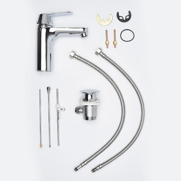 В комплекте со смесителем для раковины AQUAme Prato присутствует сливной клапан для раковины с управлением на корпусе смесителя, что позволяет быстро и удобно набирать или сливать воду одним легким движением. Смеситель оснащён литым рычагом, обеспечивающим надежность и комфортное управление потоком и температурой воды. Монтаж изделия осуществляется на одно отверстие, что существенно упрощает установку, а система быстрого монтажа с гибкой подводкой обеспечивает дополнительное удобство и экономит Ваше время. Использование современного керамического картриджа Sedal гарантирует плавную работу смесителя и высокий срок его службы. Специальный аэратор делает поток воды мягче и экономичнее, снижая расход и предотвращая разбрызгивание.
