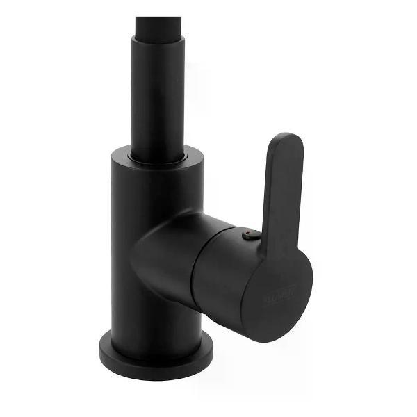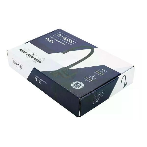 Однорычажный смеситель FLUMEN Flex, предназначенный для использования на кухне, оснащен удобным гибким изливом. Выполненный в черном цвете, он имеет корпус из качественной латуни, устойчивой к коррозии и перепадам температур, что обеспечивает его долговечность. Внутренний механизм крана, керамический картридж, работает тихо, гарантирует плавное управление водой и ее температурой. Пластиковый аэратор, встроенный в силиконовый излив, насыщает водную струю воздухом, делая ее мягкой и экономной. В комплекте идет подводка, изготовленная из нержавеющей стали, длиной 50 см для подключения к водоснабжению. Диаметр картриджа составляет 35 мм, а тип управления - рычажный. Производитель предоставляет на продукт гарантию в течение 5 лет. Вес изделия - 1.9 кг. Страна-производитель - Китай. В комплектации, кроме подводки, присутствует крепление. Функция подключения фильтра и выдвижной излив отсутствуют, но несмотря на это, кран является надежным и удобным в использовании, подходит для любого интерьера.