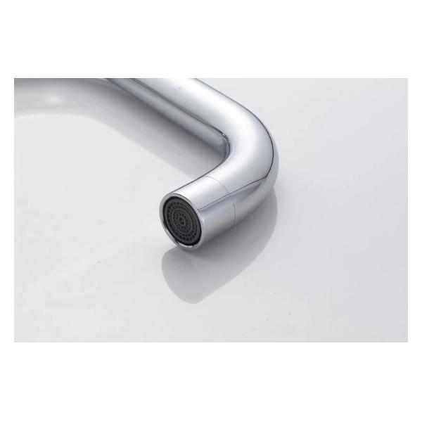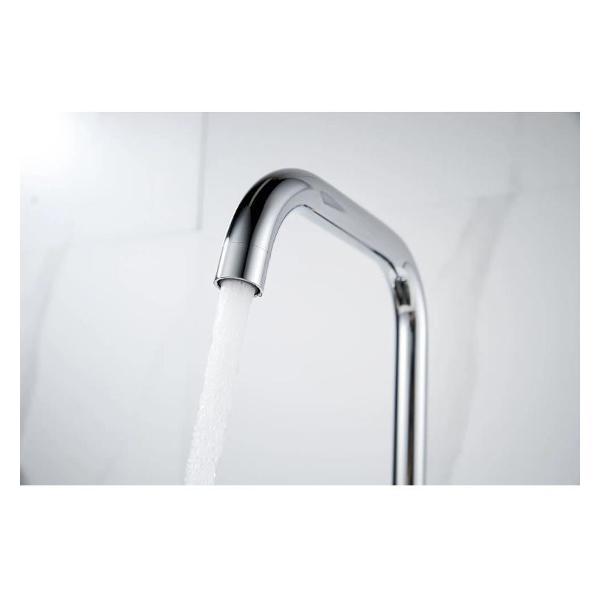 Излив этого кухонного смесителя оборудован аэратором, который помогает в экономии воды. Внутри аэратора воздух смешивается с водой, что образует насыщенную пузырьками струю, которая рассеивается на множество мелких потоков. Это делает струю более мягкой и объёмной, снижает разбрызгивание воды.