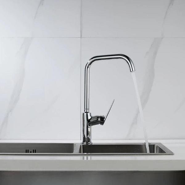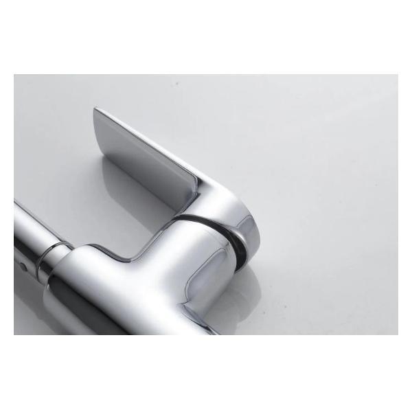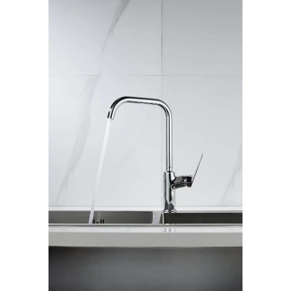Его хромовый цвет и поворотный излив гармонично впишутся в интерьер любой кухни. Материал изготовления - высококачественная латунь - гарантирует прочность и долговечность смесителя.