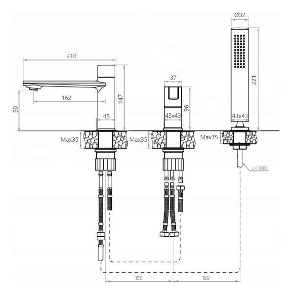 Универсальная установка на борт ванны предусматривает монтаж на 3 отверстия, что обеспечивает надежную фиксацию и стабильность конструкции.
