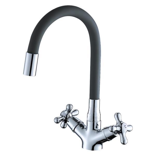Двухвентильный полимерный смеситель для кухни OneLife P03-007cr - гибкий поворотный излив. Керамические кран-буксы обеспечат легкое управление напором и температурой воды. Вместо привычного латунного сплава он изготовлен из запатентованного высокотехнологичного полимера (выдерживает 510 000 циклов и 53 АТМ без замены изделия после теста на цикличность, исключает возможность обжечься при касании, не подвержен коррозии и окислению, стойкий к отрицательным температурам), что обеспечивает срок службы более 15 лет. Встроенный аэратор экономит воду и, обогащая струю воздухом, делает её мягкой и без брызг. Цвет глянцевый хром, излив матовый черный.