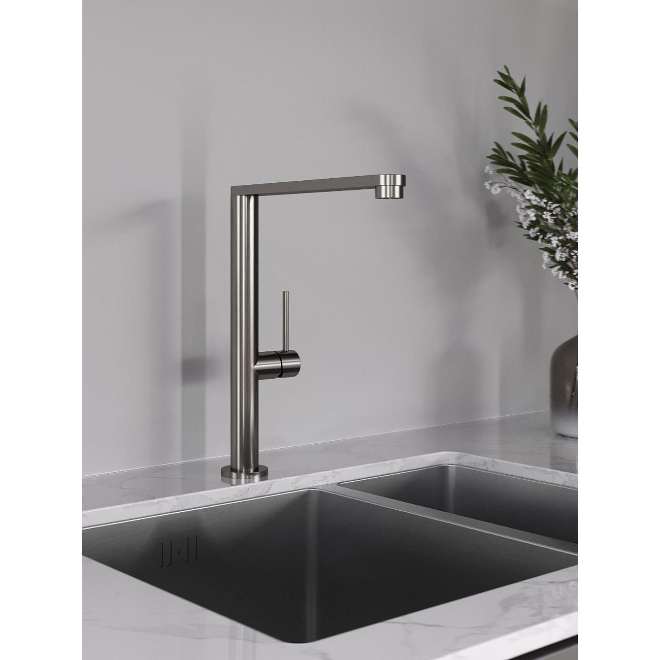 Современные смесители - это не только стиль и качество, но также удобство и функциональность. Однозахватный смеситель для кухни с поворотным изливом Orange Steel отлично подойдет для двойных моек. Благодаря фирменному картриджу Orange управление напором и температурой воды легкое и плавное. Корпус выполнен из нержавеющей стали, не подверженной коррозии от длительного контакта с водой. Износостойкое покрытие в цвете матовый никель нанесено по технологии вакуумного напыления (PVD), на нем незаметны разводы от высохшей воды и отпечатки пальцев. Встроенный аэратор (с функцией легкого очищения от известкового налета) экономит воду и, обогащая струю воздухом, делает её мягкой и без брызг.