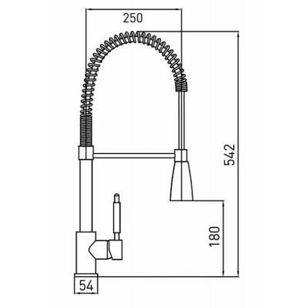 Высота смесителя 542мм., высота излива 180мм.
