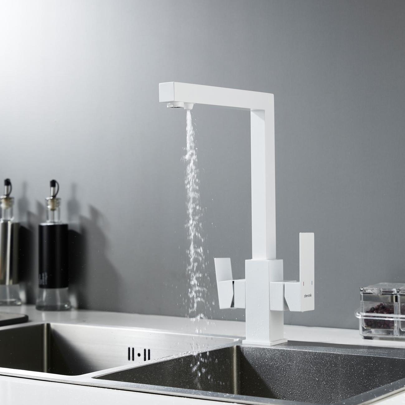 Смеситель для кухни Shevanik S148C в белом матовом цвете — это современное решение для тех, кто хочет сочетать стиль, функциональность и заботу о здоровье. Его корпус из прочной нержавеющей стали выдерживает ежедневные нагрузки, сохраняя безупречный вид даже спустя годы, а угловатый, лаконичный дизайн придаёт кухне строгой выразительности и технологичного шарма, идеально вписываясь в современные интерьеры. Управление осуществляется с помощью одного рычага и надёжного керамического картриджа, обеспечивающего плавное регулирование температуры и напора без протечек.