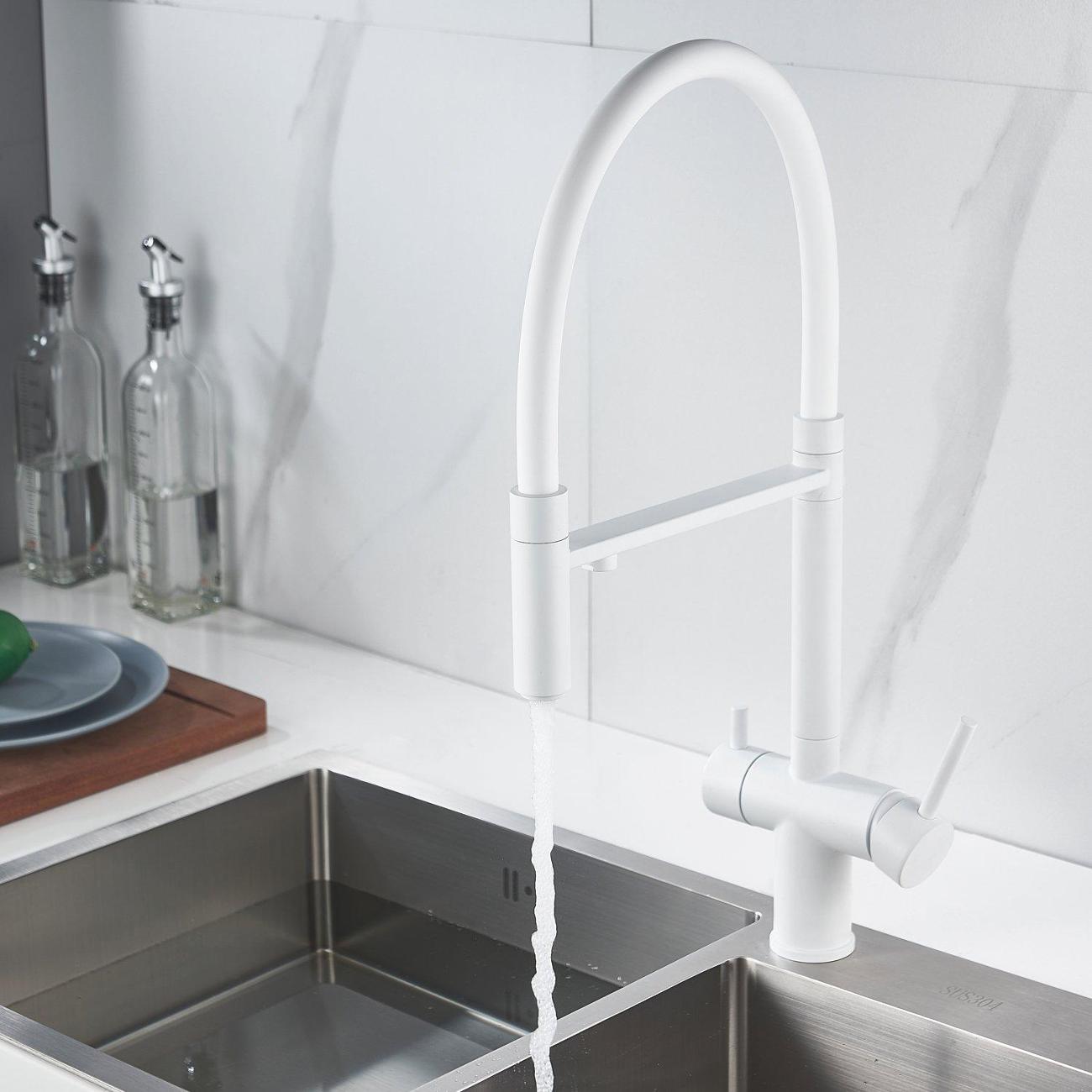 Одним из ключевых преимуществ смесителя Shevanik является возможность подключения фильтра для воды. Теперь у вас всегда будет доступ к чистой и свежей воде прямо из вашей мойки. Дополнительный излив служит не только для подачи фильтрованной воды, но и как держатель для гибкого излива, когда тот не используется, что добавляет удобства в повседневном использовании.