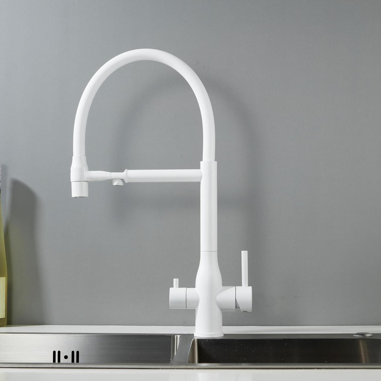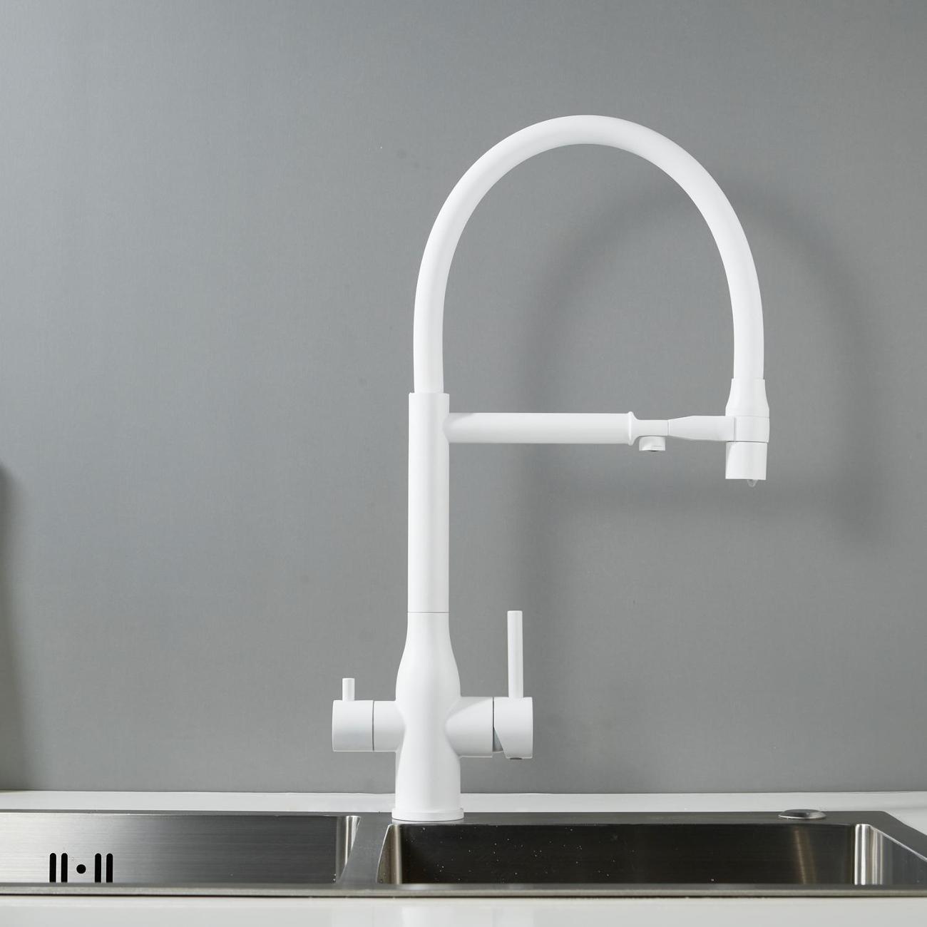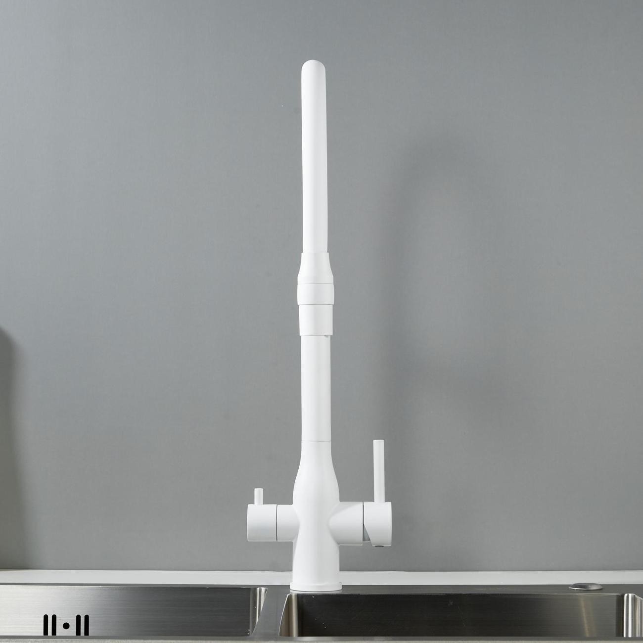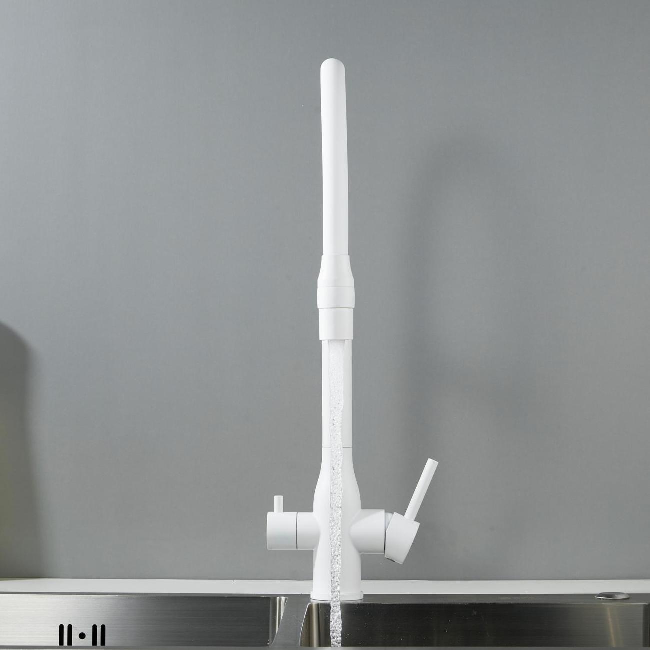 В основе работы смесителя — надёжный керамический картридж с эргономичным рычажным управлением, обеспечивающим плавное и точное регулирование напора и температуры воды. Но главное достоинство модели — возможность подключения фильтра для воды: фильтрованная вода подаётся через отдельный поворотный излив, оснащённый аэратором. Это позволяет получать кристально чистую воду для питья и приготовления пищи прямо из крана.