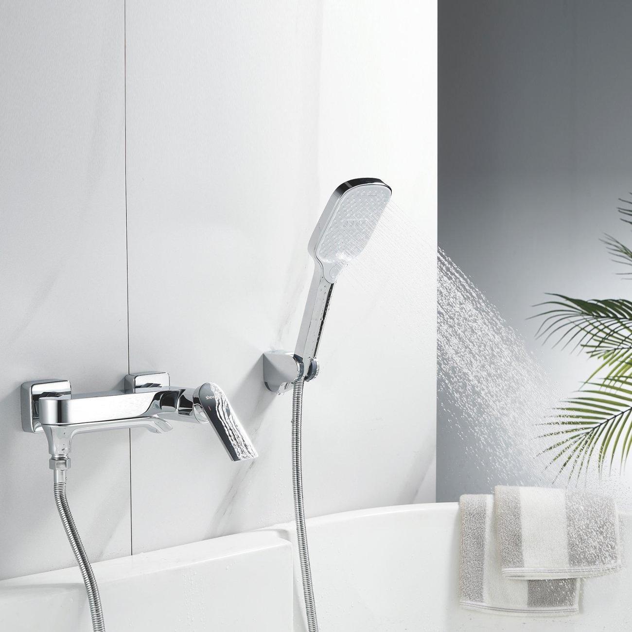 Смеситель для ванны Shevanik S4102 в цвете хром— идеальное сочетание стиля и функциональности. Изготовленный из высококачественной латуни, он обладает классическим настенным монтажом и плавными линиями форм. Компактный излив позволяет наполнять ванну, а также служит переключателем на ручной душ в сложенном положении. Трёхрежимная душевая лейка из ABS-пластика обеспечивает комфортное использование. Душевой шланг длиной 150 см в металлической оплётке добавляет удобства.