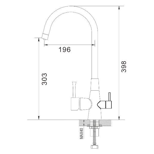 Высокий поворотный излив с аэратором не только стильно выглядит, но и практичен в использовании. Дополнительный канал для подачи питьевой воды делает этот смеситель универсальным решением для вашей кухни. Монтаж к столешнице или мойке осуществляется легко и быстро с помощью гайки, а в комплекте уже идет гибкая подводка длиной 50 см с стандартом подключения 1/2".