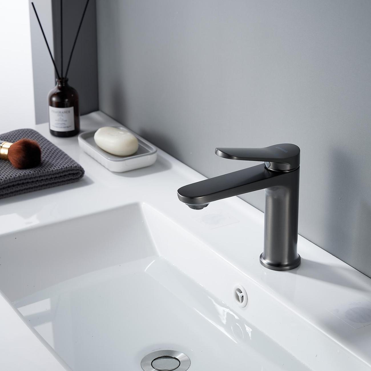 Смеситель для раковины Shevanik S4301T в современном цвете "оружейная сталь" — это воплощение современного дизайна и непревзойдённой функциональности. Его плавные линии и изысканный внешний вид подчеркнут элегантность вашей ванной комнаты. Смеситель оснащён высококачественным керамическим картриджем и удобным рычажным управлением, что обеспечивает долговечность и лёгкость в использовании.