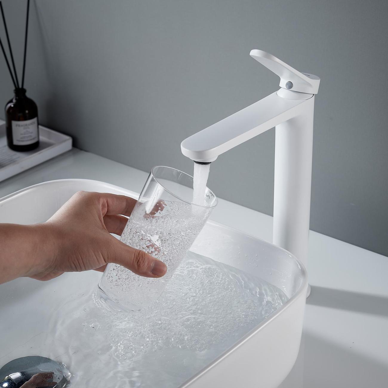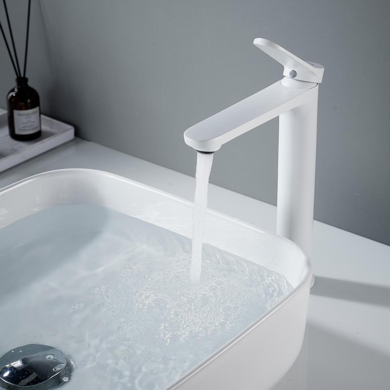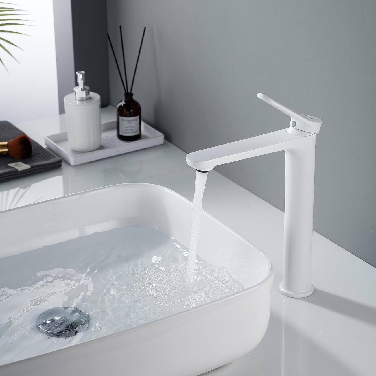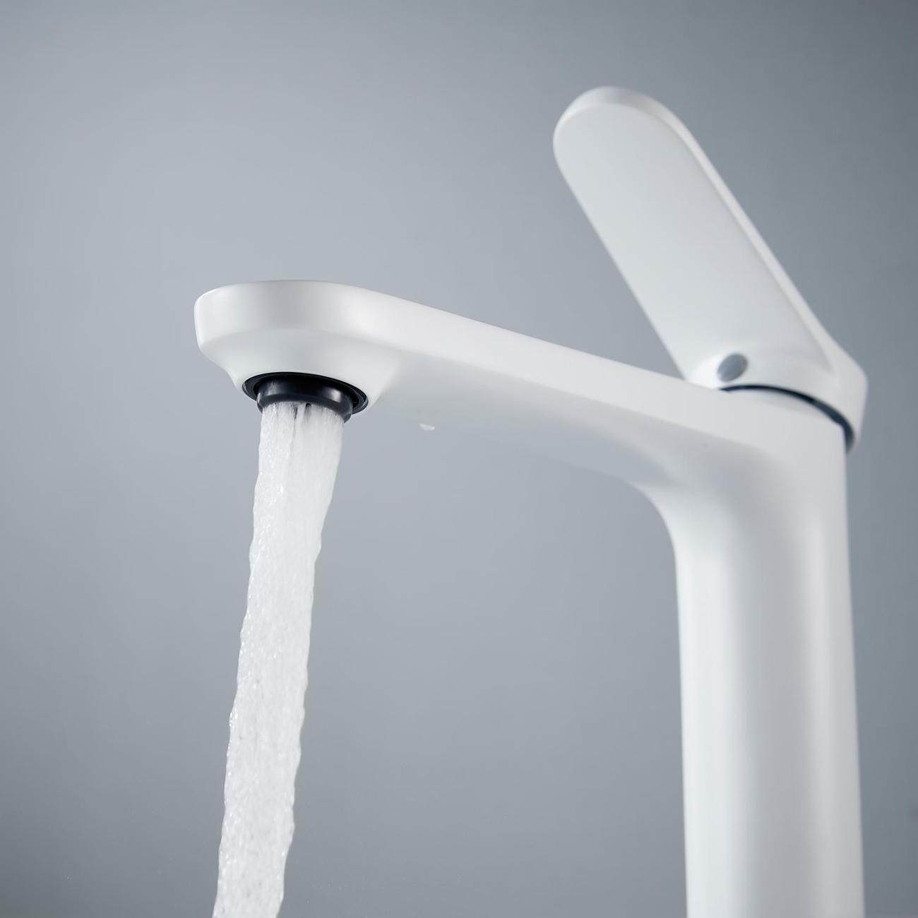 Высокий смеситель для раковины Shevanik S4311C в белом матовом цвете — идеальное решение для современных интерьеров, особенно для раковин-чаш. Его современный дизайн с плавными линиями придаст вашей ванной комнате элегантность и стиль. Смеситель оснащён надёжным керамическим картриджем и удобным рычажным управлением, что обеспечивает долговечность и простоту использования.