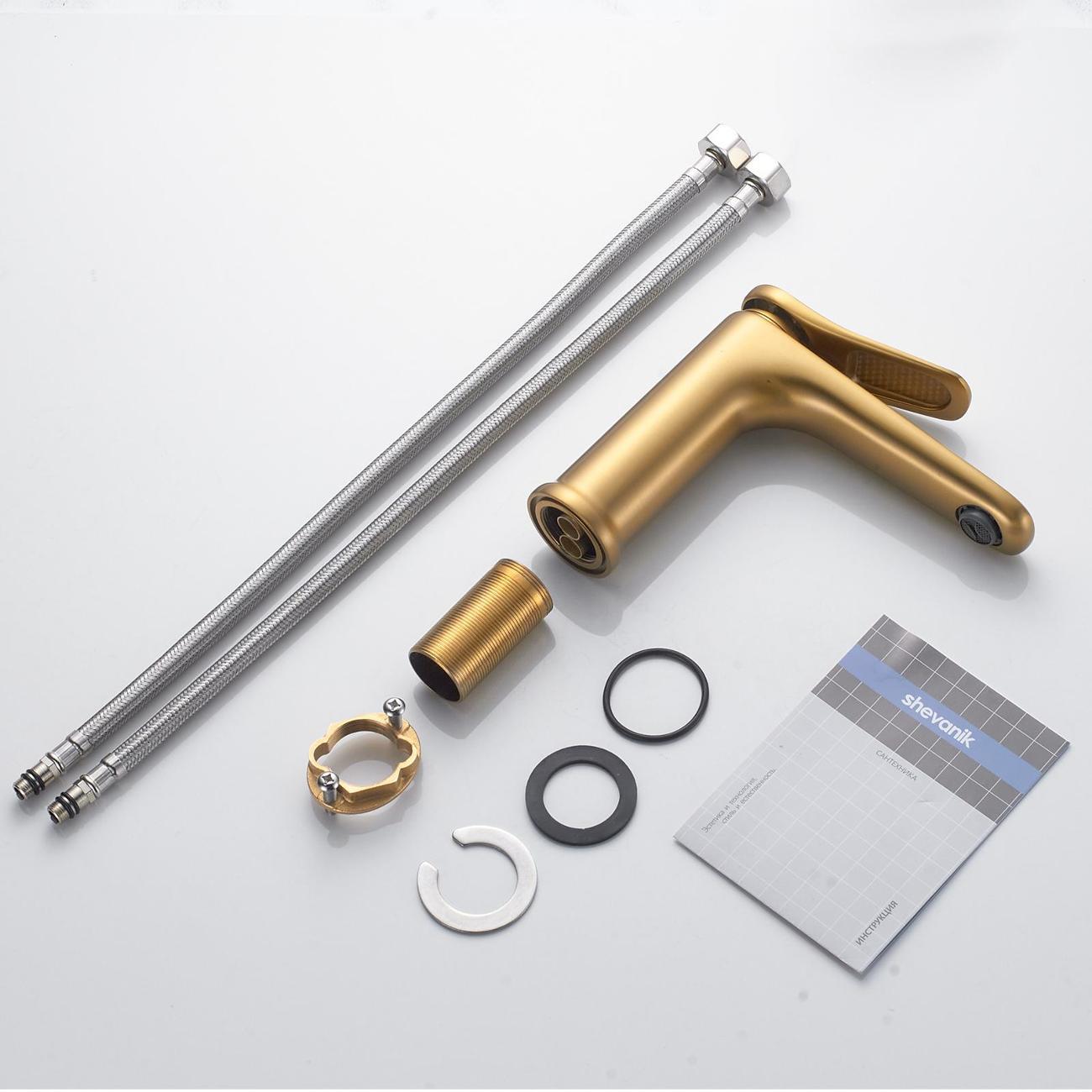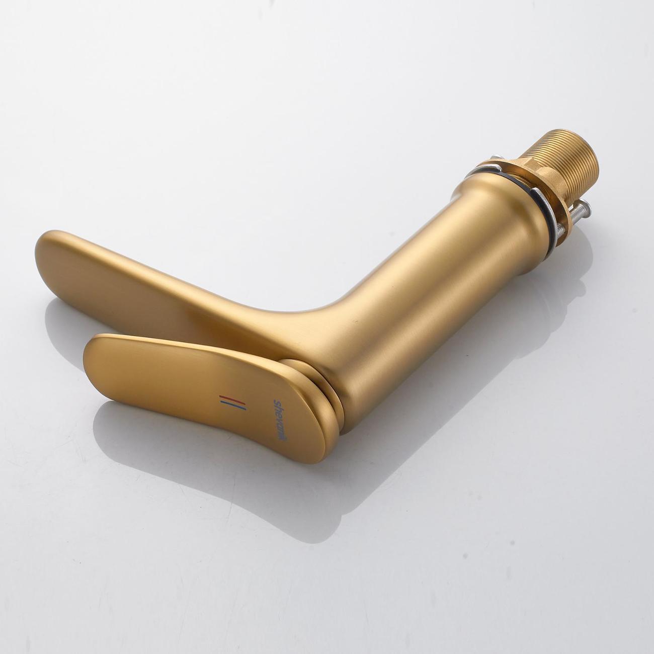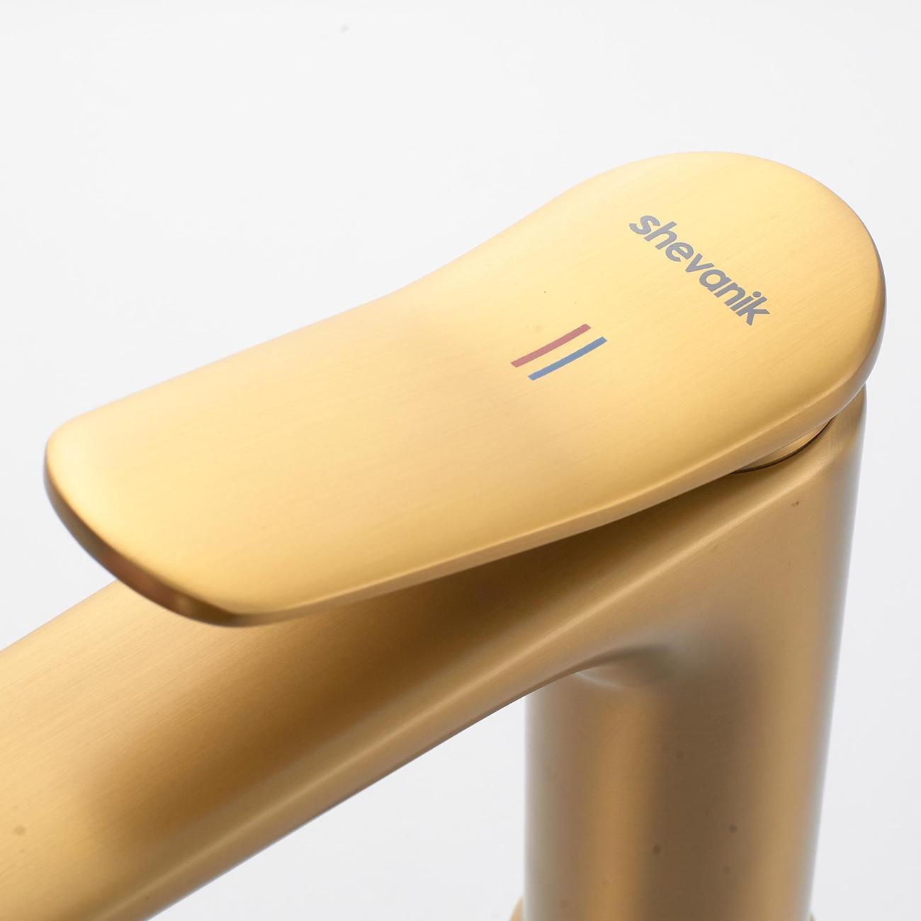 Смеситель для раковины Shevanik S4701G в цвете "золотой сатин" (шлифованное золото) — это идеальное сочетание современного минималистичного дизайна и высокого качества. Изготовленный из прочной латуни, он обеспечивает долговечность и надёжность в использовании. Механизм смесителя основан на керамическом картридже с рычажным управлением, что гарантирует лёгкость и точность регулировки температуры и напора воды.