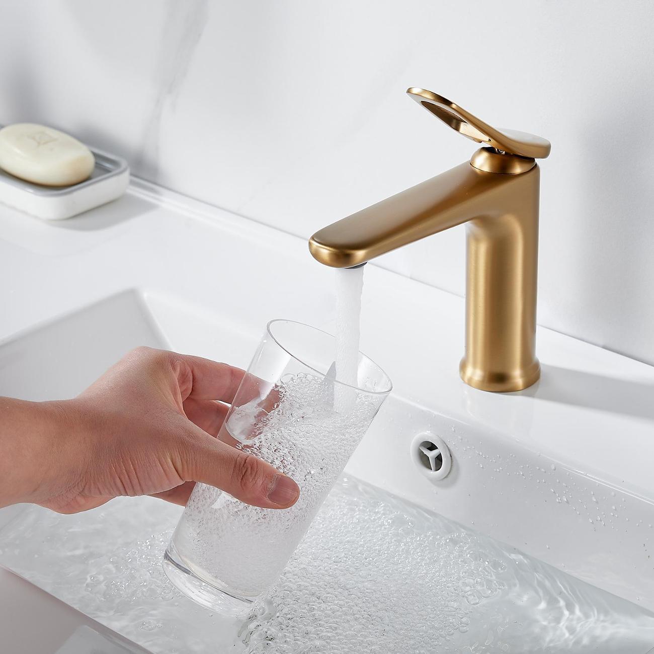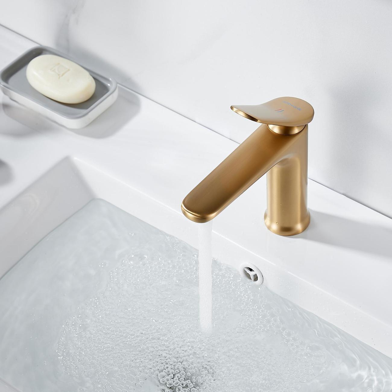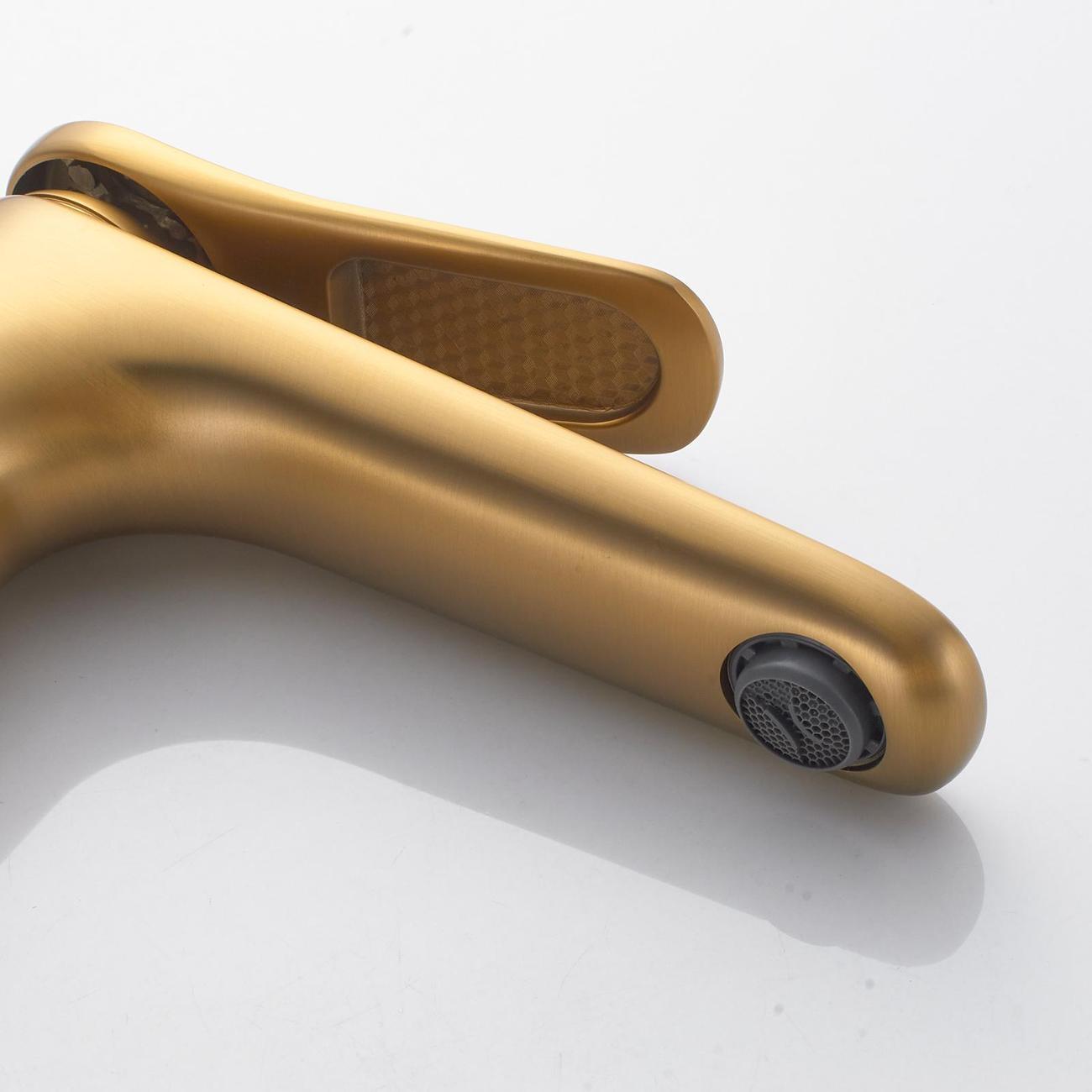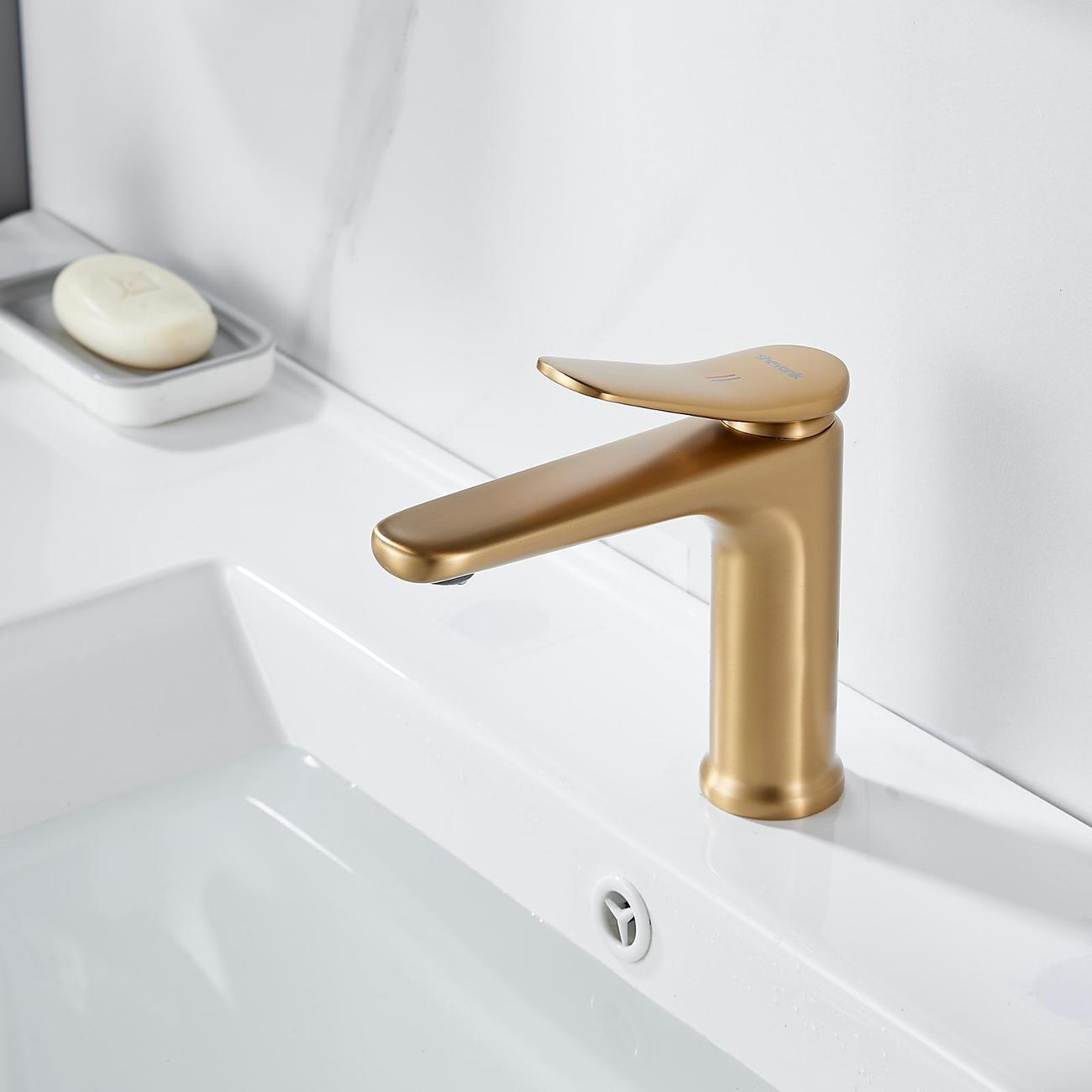 Смеситель для раковины Shevanik S4701G в цвете "золотой сатин" (шлифованное золото) — это идеальное сочетание современного минималистичного дизайна и высокого качества. Изготовленный из прочной латуни, он обеспечивает долговечность и надёжность в использовании. Механизм смесителя основан на керамическом картридже с рычажным управлением, что гарантирует лёгкость и точность регулировки температуры и напора воды.
