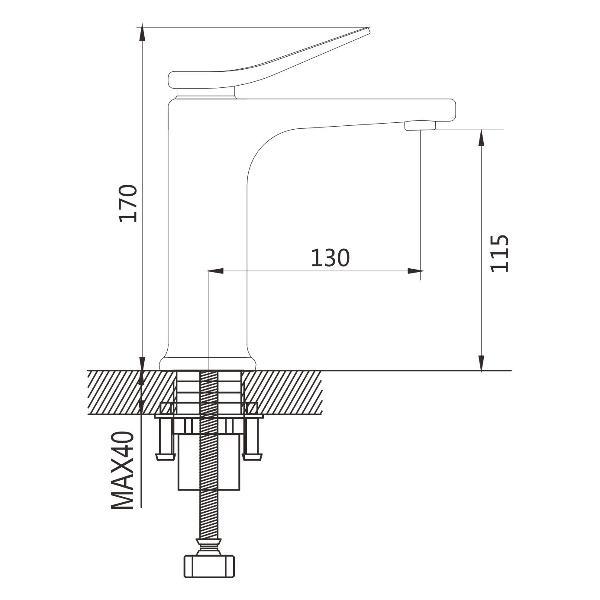 Излив смесителя фиксированный и оснащён аэратором, который способствует более равномерному и мягкому потоку воды. Монтаж осуществляется при помощи гайки, а максимальная толщина установки составляет 40 мм. В комплекте идёт гибкая подводка длиной 45 см. со стандартным подключением 1/2", что упрощает процесс установки.