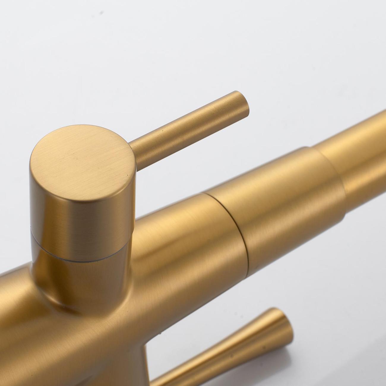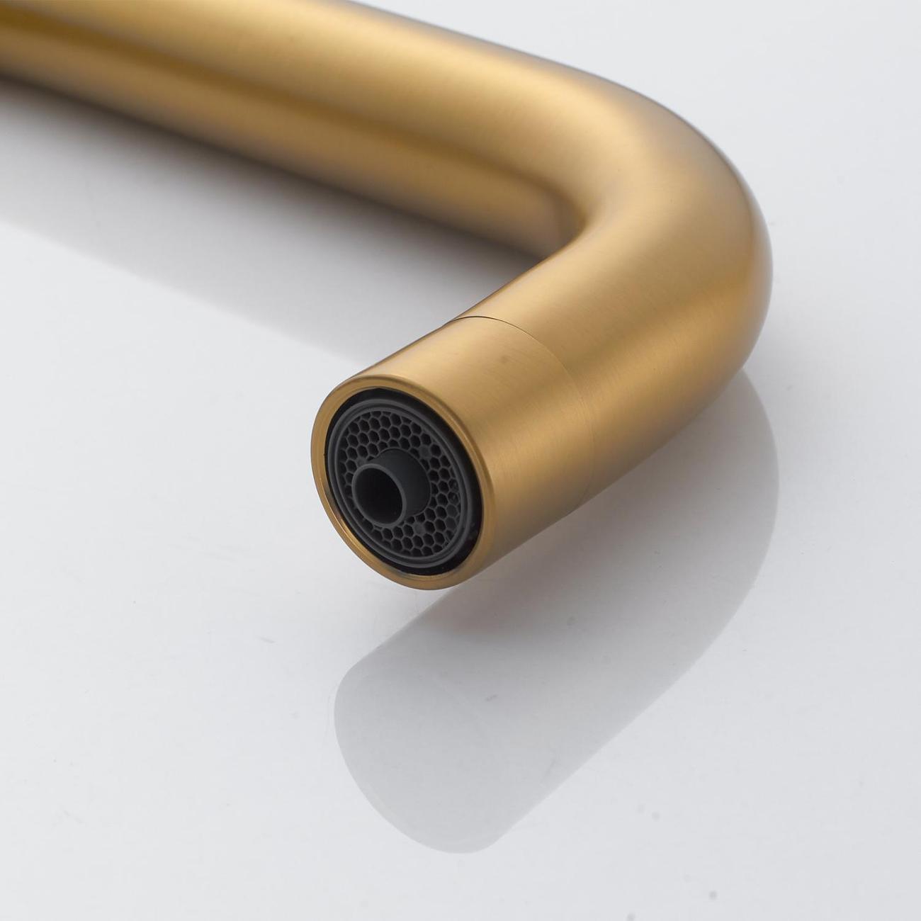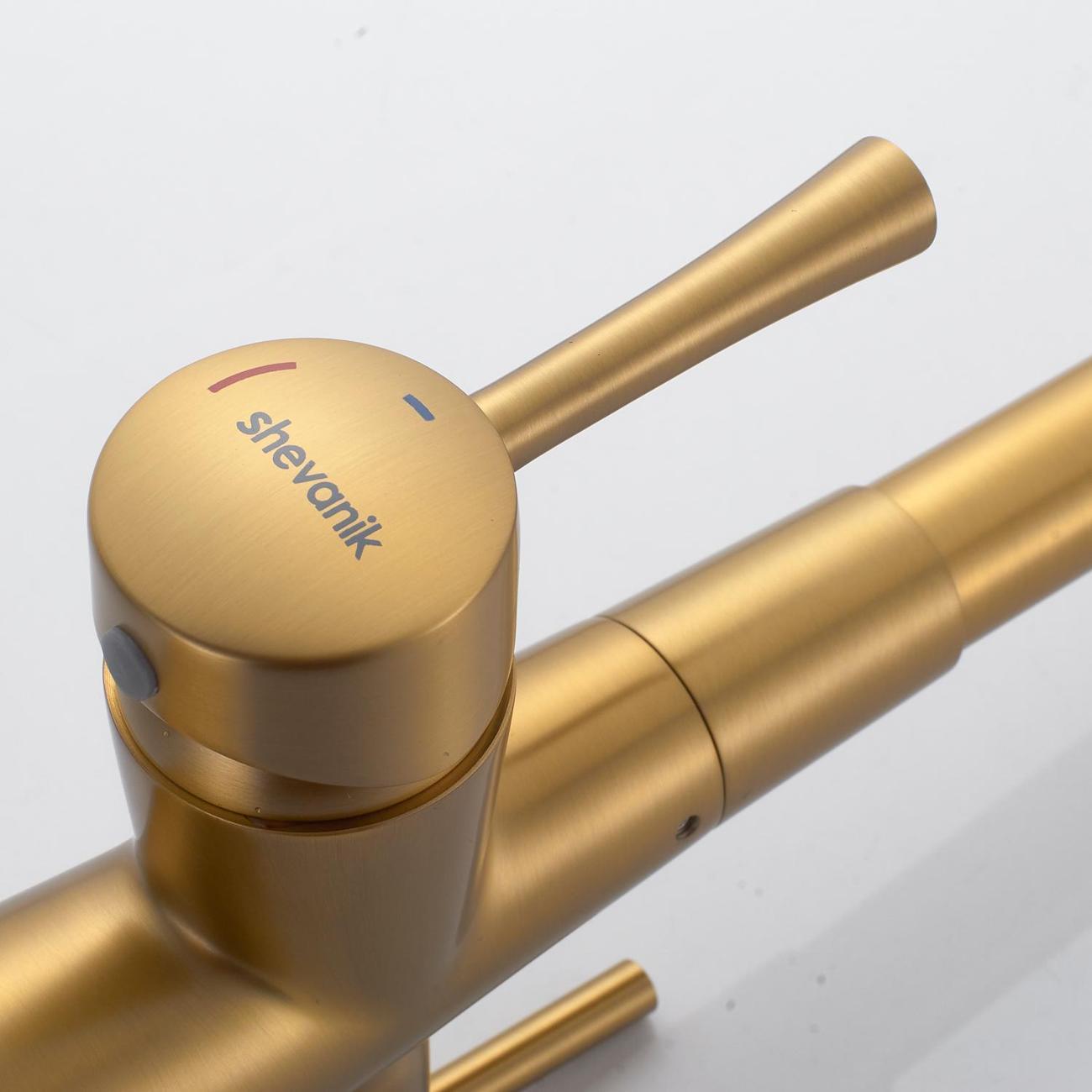 Смеситель для кухни Shevanik S528G в современном цвете "золотой сатин" (матовое полированное золото) — это воплощение элегантности и функциональности, созданный для истинных ценителей комфорта. Изготовленный из высококачественной нержавеющей стали марки AISI 304, он гарантирует долговечность и устойчивость к коррозии.