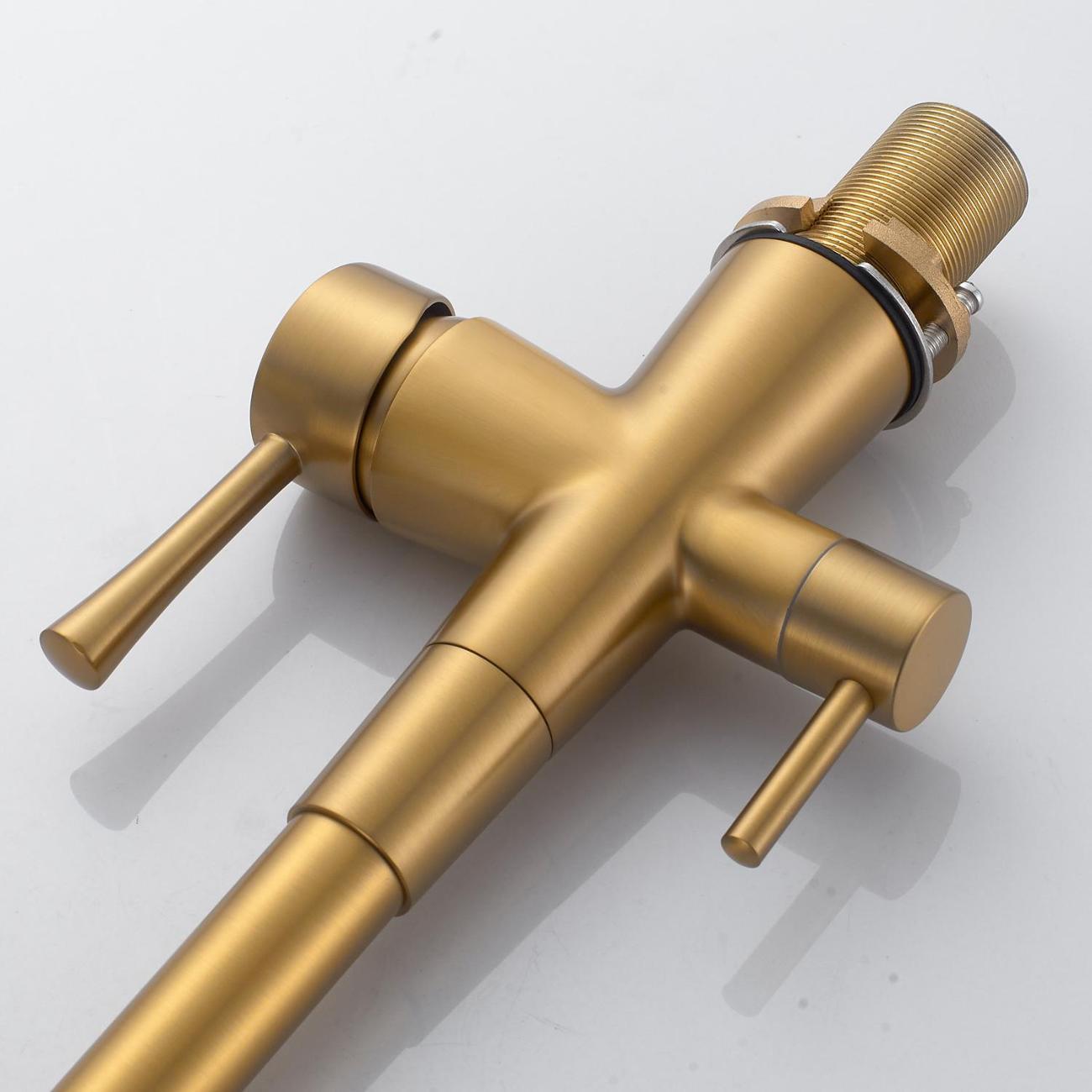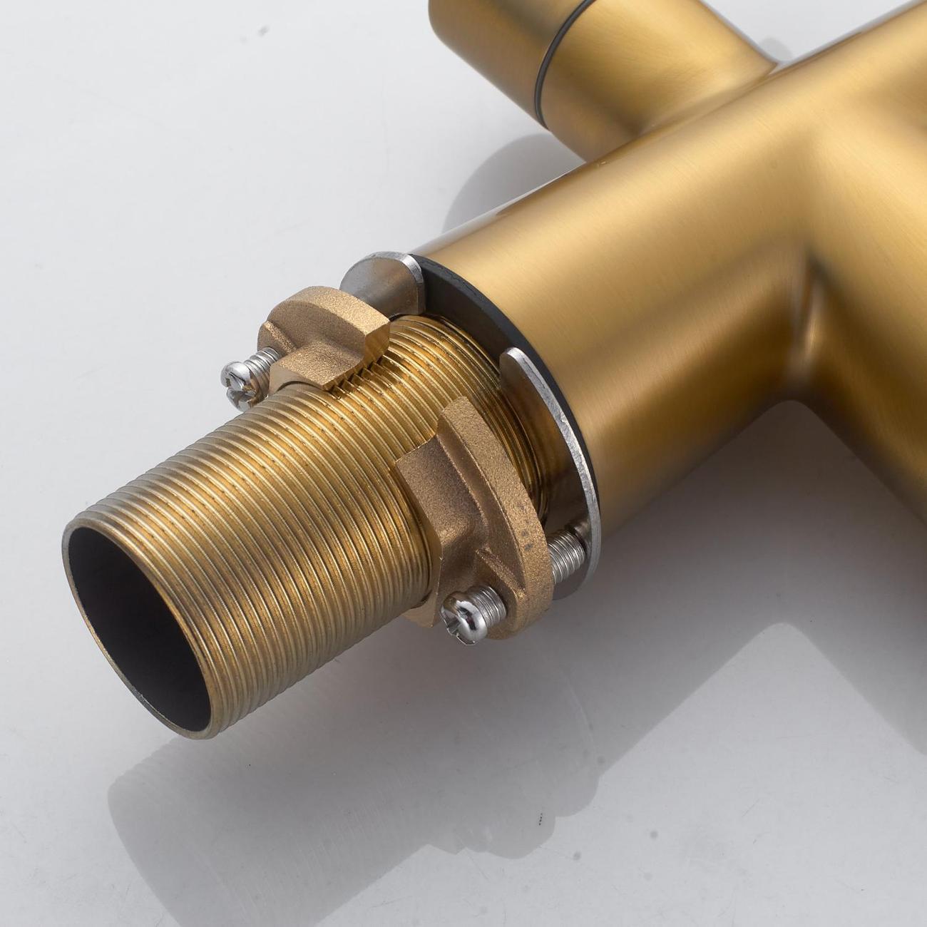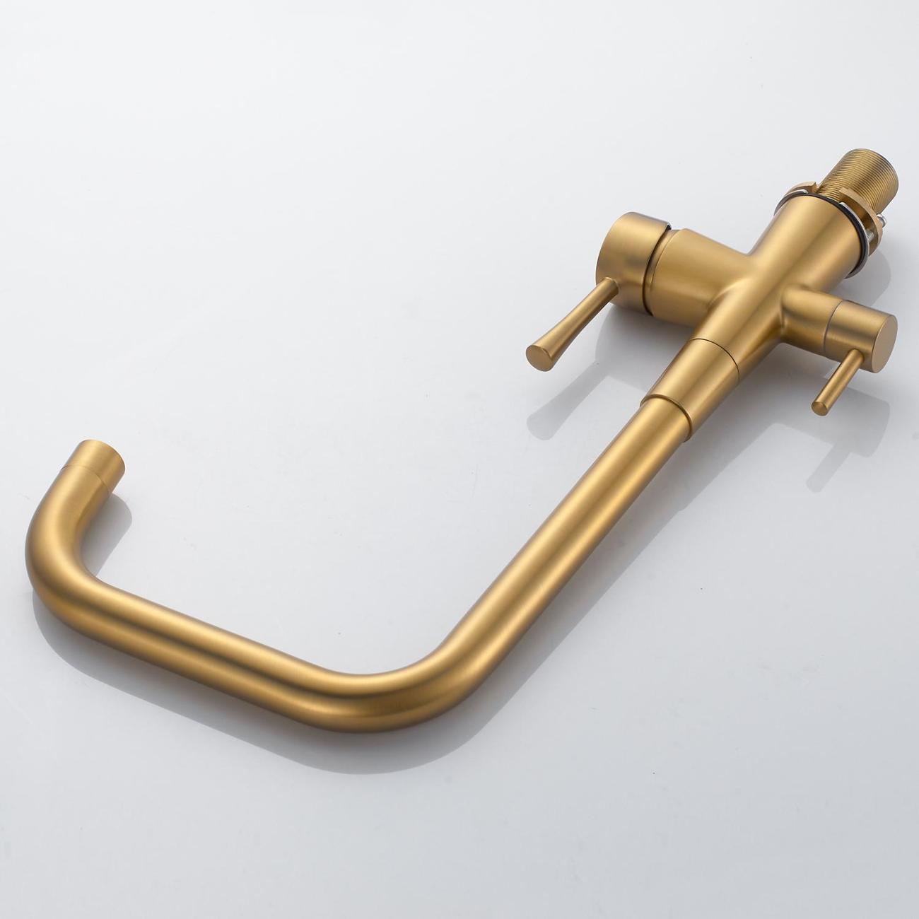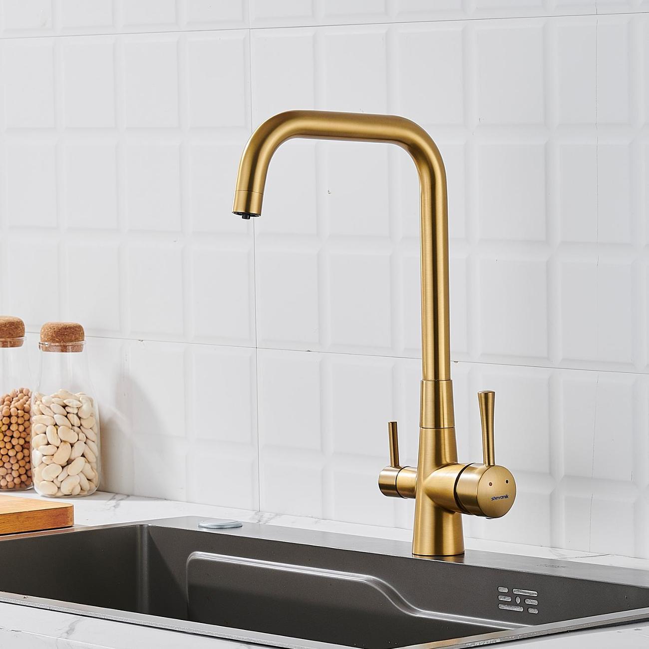 Смеситель для кухни Shevanik S528G в современном цвете "золотой сатин" (матовое полированное золото) — это воплощение элегантности и функциональности, созданный для истинных ценителей комфорта. Изготовленный из высококачественной нержавеющей стали марки AISI 304, он гарантирует долговечность и устойчивость к коррозии.