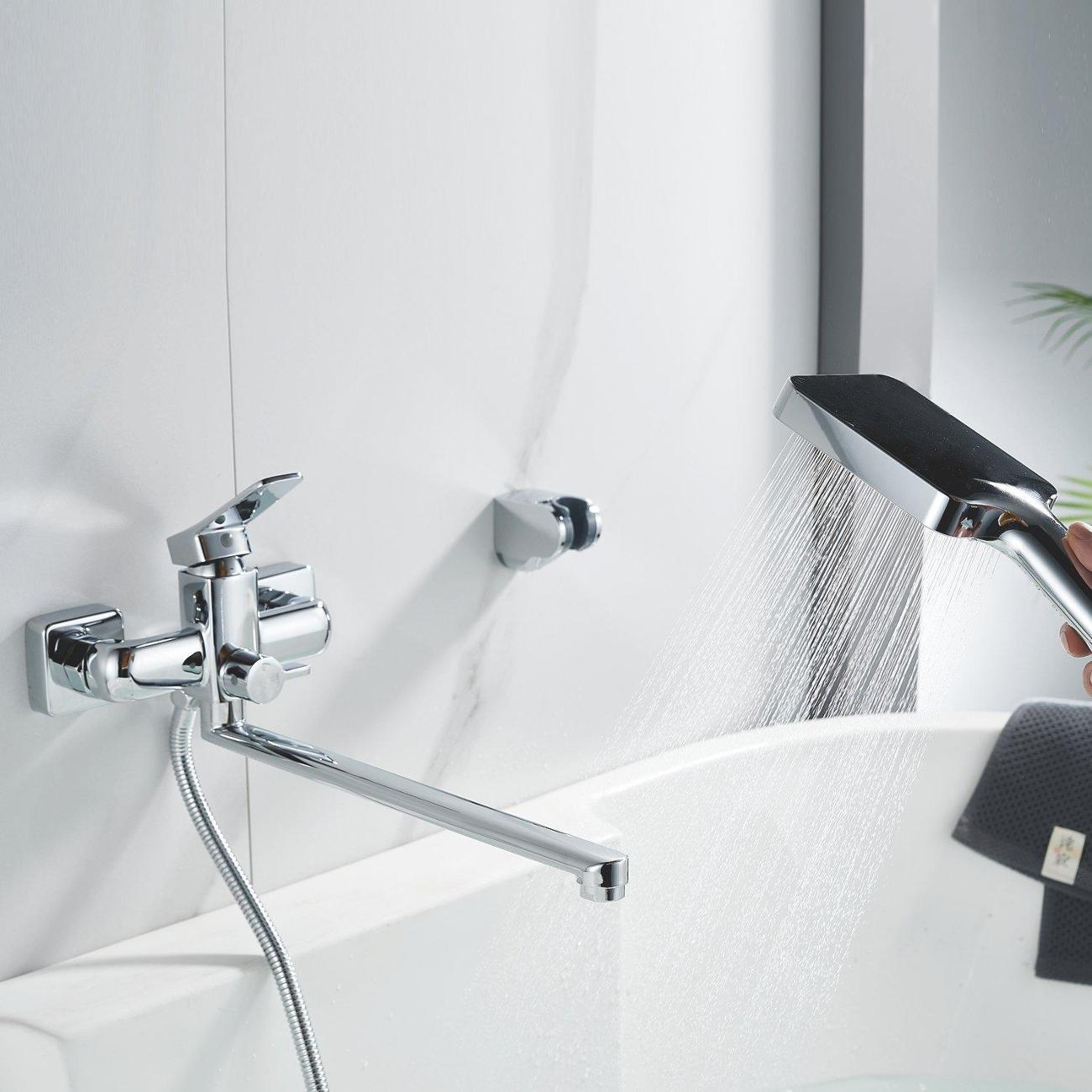 В комплекте со смесителем поставляются эксцентрики, настенный держатель для душевой лейки и декоративные отражатели, что избавит вас от дополнительных затрат и хлопот при установке. Керамический картридж и рычажное управление обеспечивают плавное и точное регулирование температуры воды.
