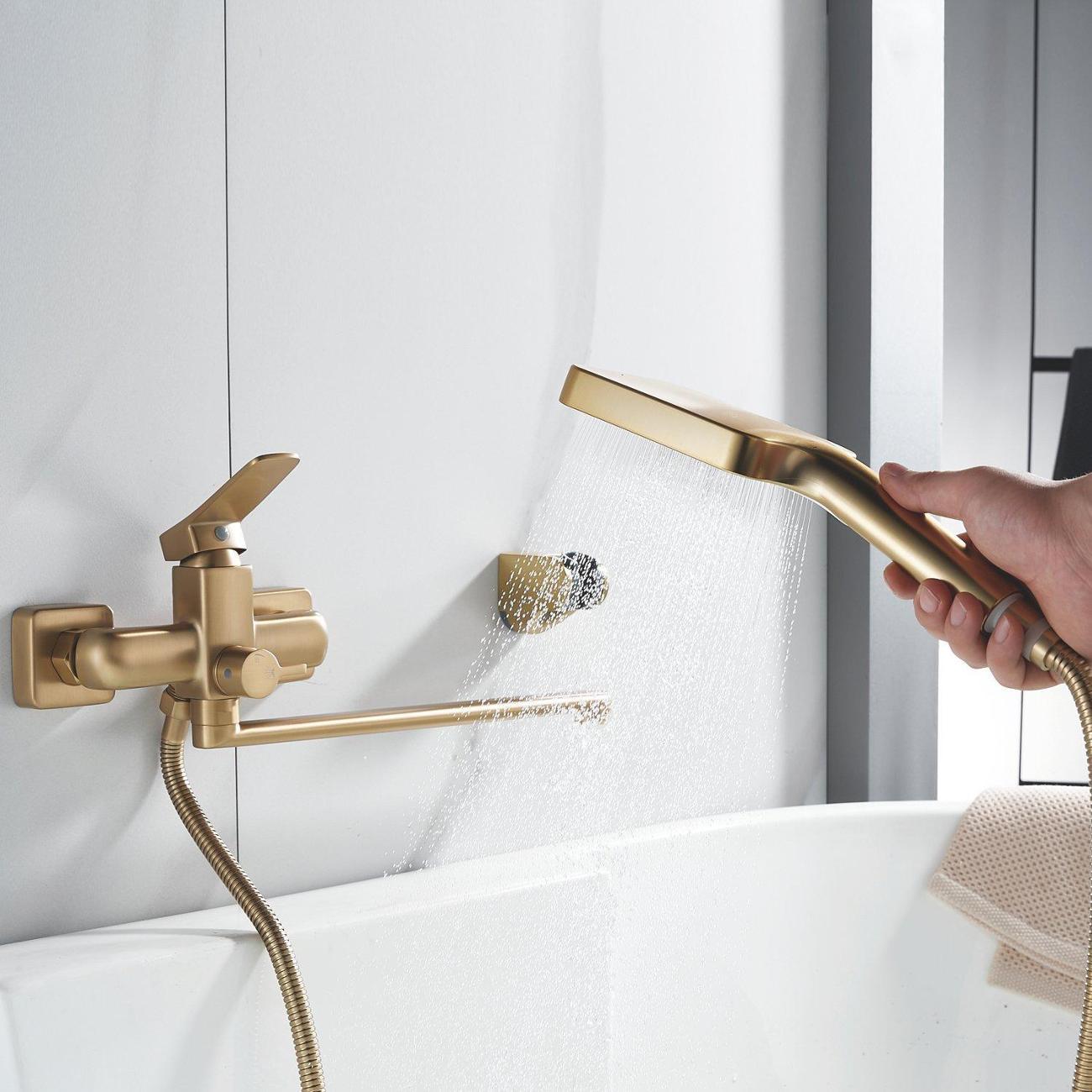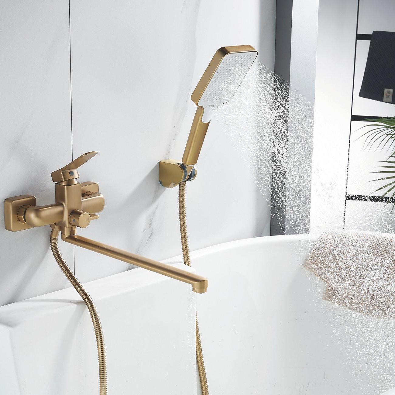Смеситель для ванны Shevanik S9922G - это стильное и функциональное решение для вашей ванной комнаты. Угловатая форма смесителя прекрасно сочетается с любым интерьером, а длинный поворотный излив с аэратором обеспечивает комфорт при использовании.