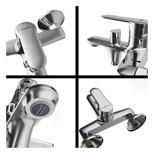 Смеситель для ванной TOKITO Kanda с коротким изливом, представляет собой комплект высокого качества с латунным корпусом, устойчивым к перепадам давления и температуры. Его антикоррозийные свойства и безопасность для здоровья делают его идеальным выбором для ванной комнаты. Никель-хромовое покрытие устойчиво к истиранию и придает модели зеркальный блеск. Для обеспечения бесшумной работы, плавного переключения ручки и точной регулировки температуры и напора воды в комплекте с смесителем идет керамический картридж TOKITO. Его силиконовый аэратор Neoperl M24 легко очищается, насыщает водную струю воздухом, делая ее мягкой, снижает количество брызг и помогает экономить воду. Переключение с крана на душ осуществляется поворотное. В комплекте также идут эксцентрики, отражатели, лейка, шланг и держатель для душа. Лейка имеет диаметр 75 мм и один режим работы. Шланг, длиной 1500 мм, изготовлен из нержавеющей стали. Управление осуществляется с помощью рычажного механизма. Гарантия от производителя составляет 7 лет. Страна производства - Япония. Вес - 2.059 кг.