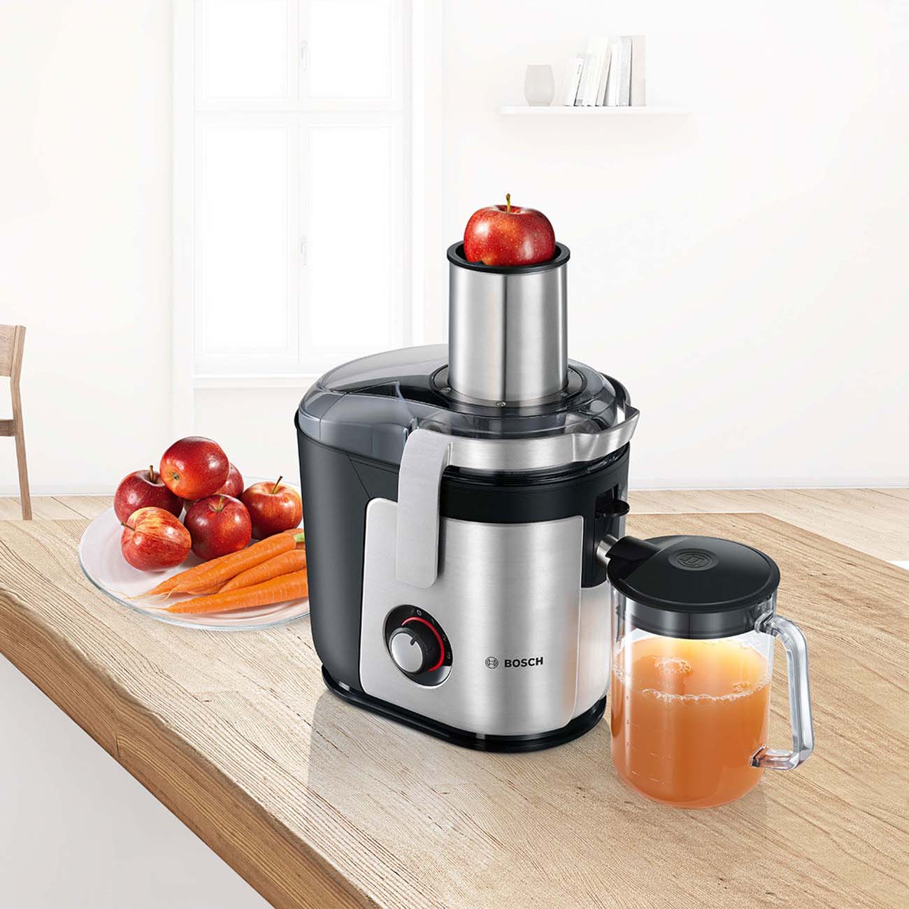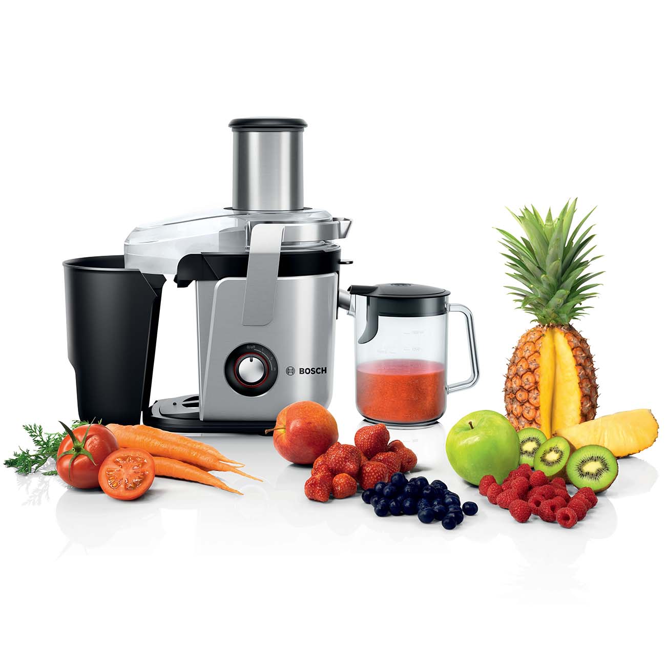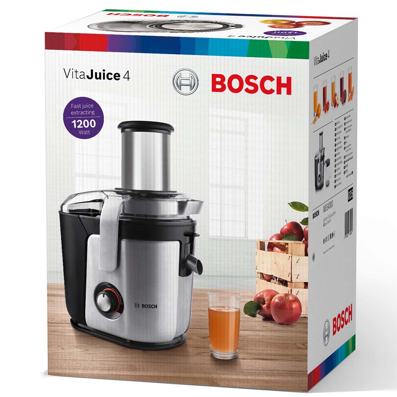 Соковыжималка JM Bosch MES4010 оснащена мощным двигателем на 1200 Вт, благодаря чему легко справляется как с мягкими, так и с твердыми продуктами. Для подключения к сети есть шнур длиной 1,5 м.