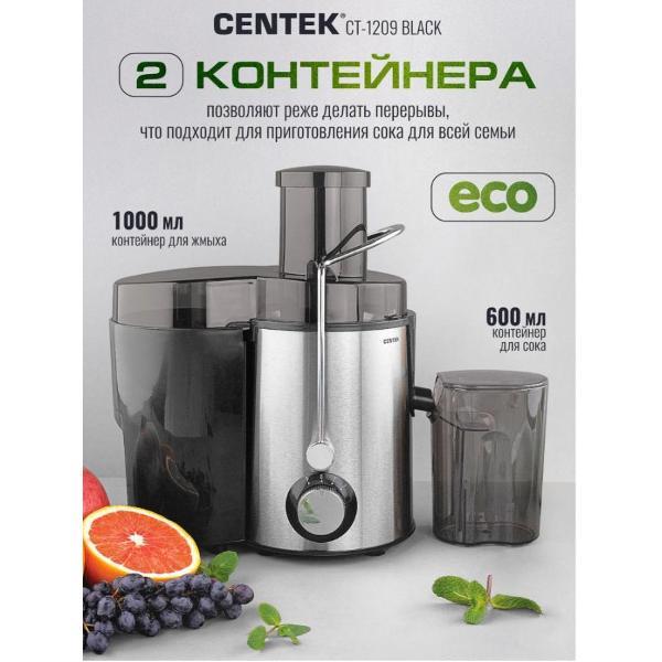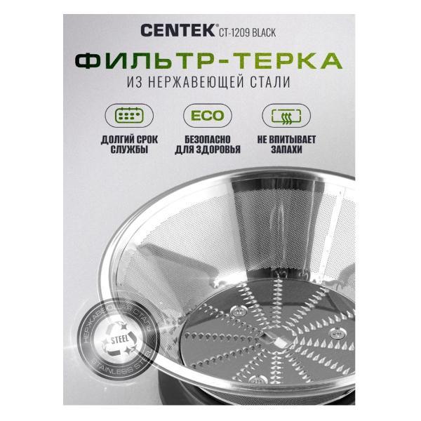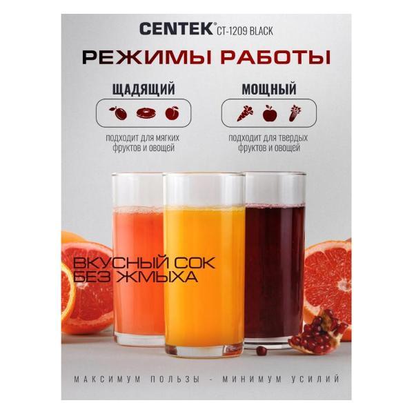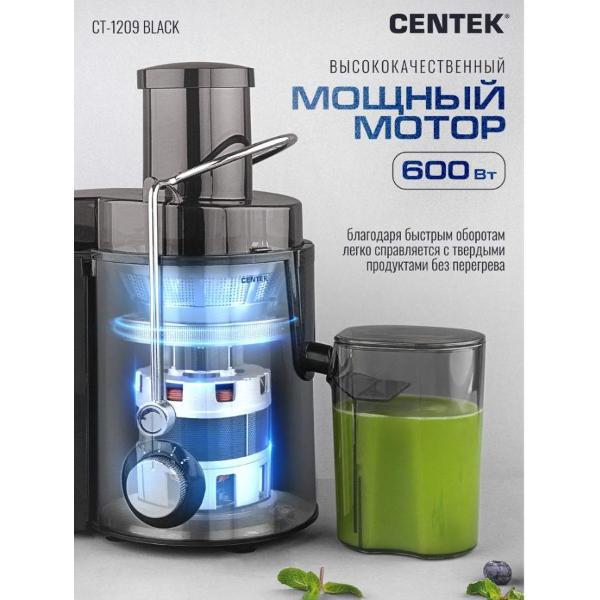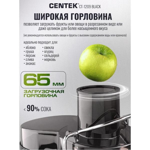 Вы можете купить Соковыжималка центробежная Centek CT-1209 черная в магазинах М.Видео по доступной цене. Соковыжималка центробежная Centek CT-1209 черная: подробное описание, фото и отзывы реальных покупателей, характеристики, возможность скачать инструкции и подобрать аксессуары.