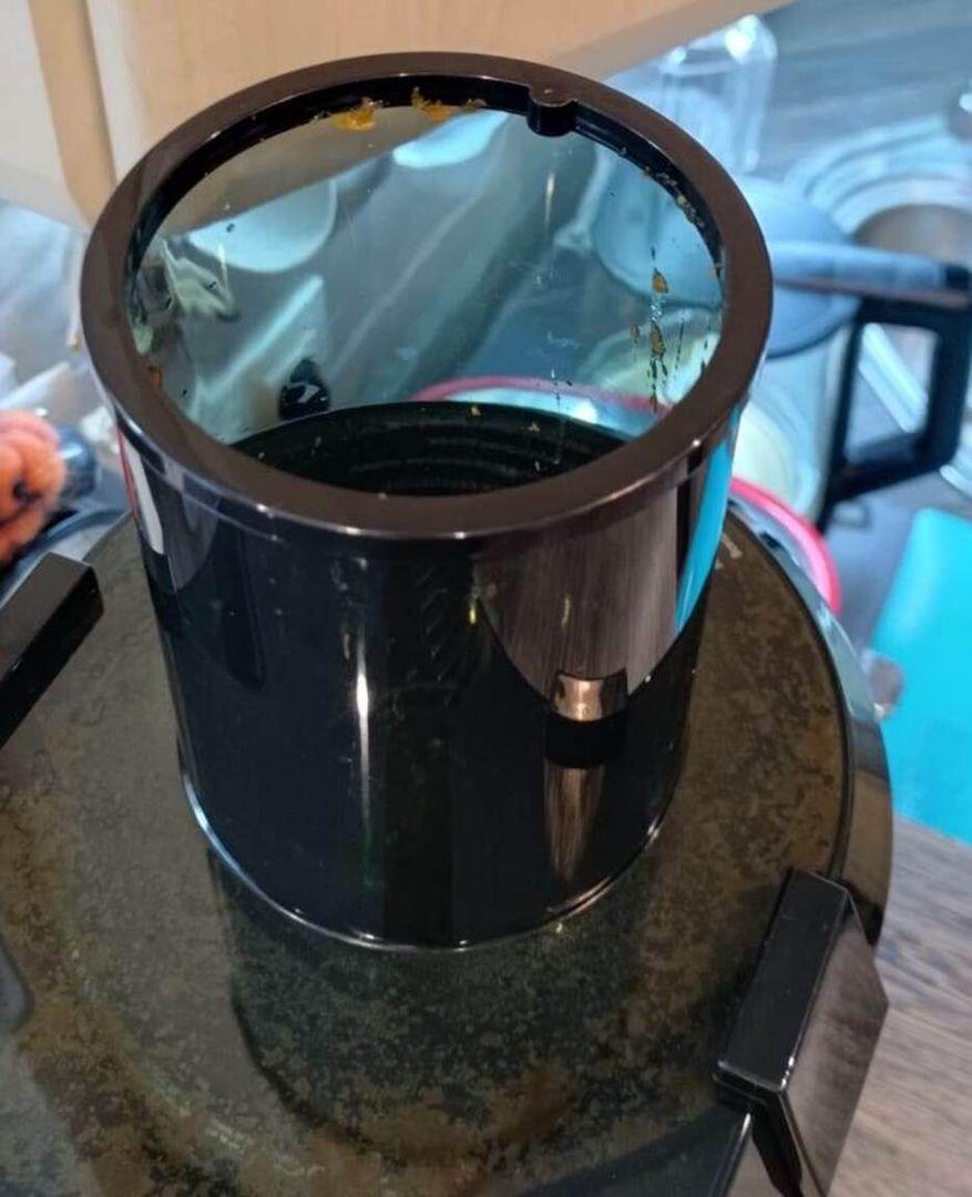 Большой контейнер для жмыха. Не чистишь постоянно. Сделал партию сока, потом выкинул жмых. Удобно для семьи.