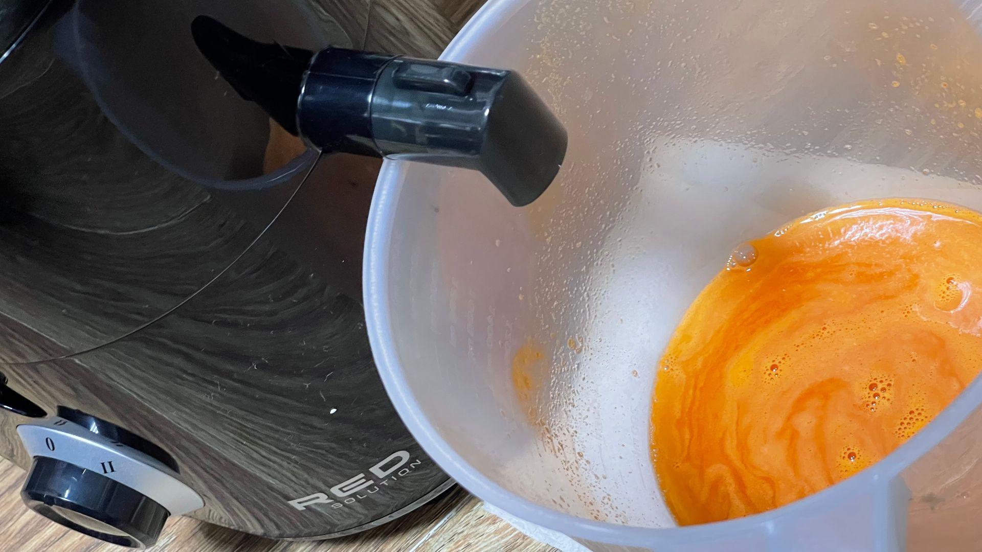 Много сока. Жмых почти сухой, значит, выжимает по максимуму.