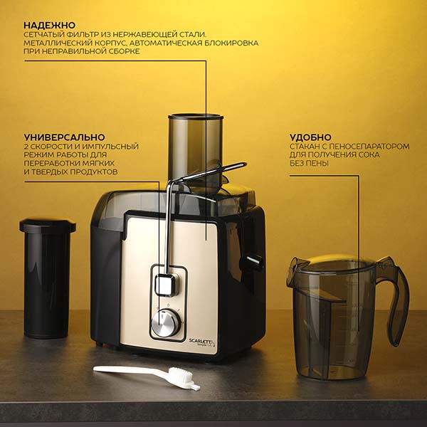 Вы можете купить Соковыжималка центробежная Scarlett SC-JE50S24 Gold в магазинах М.Видео по доступной цене. Соковыжималка центробежная Scarlett SC-JE50S24 Gold: подробное описание, фото и отзывы реальных покупателей, характеристики, возможность скачать инструкции и подобрать аксессуары.
