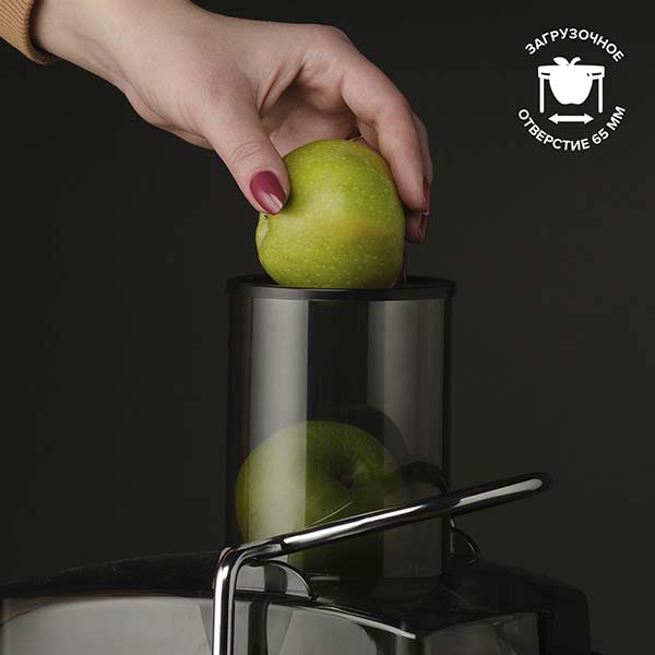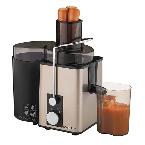 Центробежная соковыжималка Scarlett SC-JE50S57 оборудована емкостями для сока и мякоти объемом 0,6 л и 1 л соответственно. Мощность модели составляет 1200 Вт. Загрузочное отверстие — 7,5 см. Материалом для корпуса послужила нержавеющая сталь.