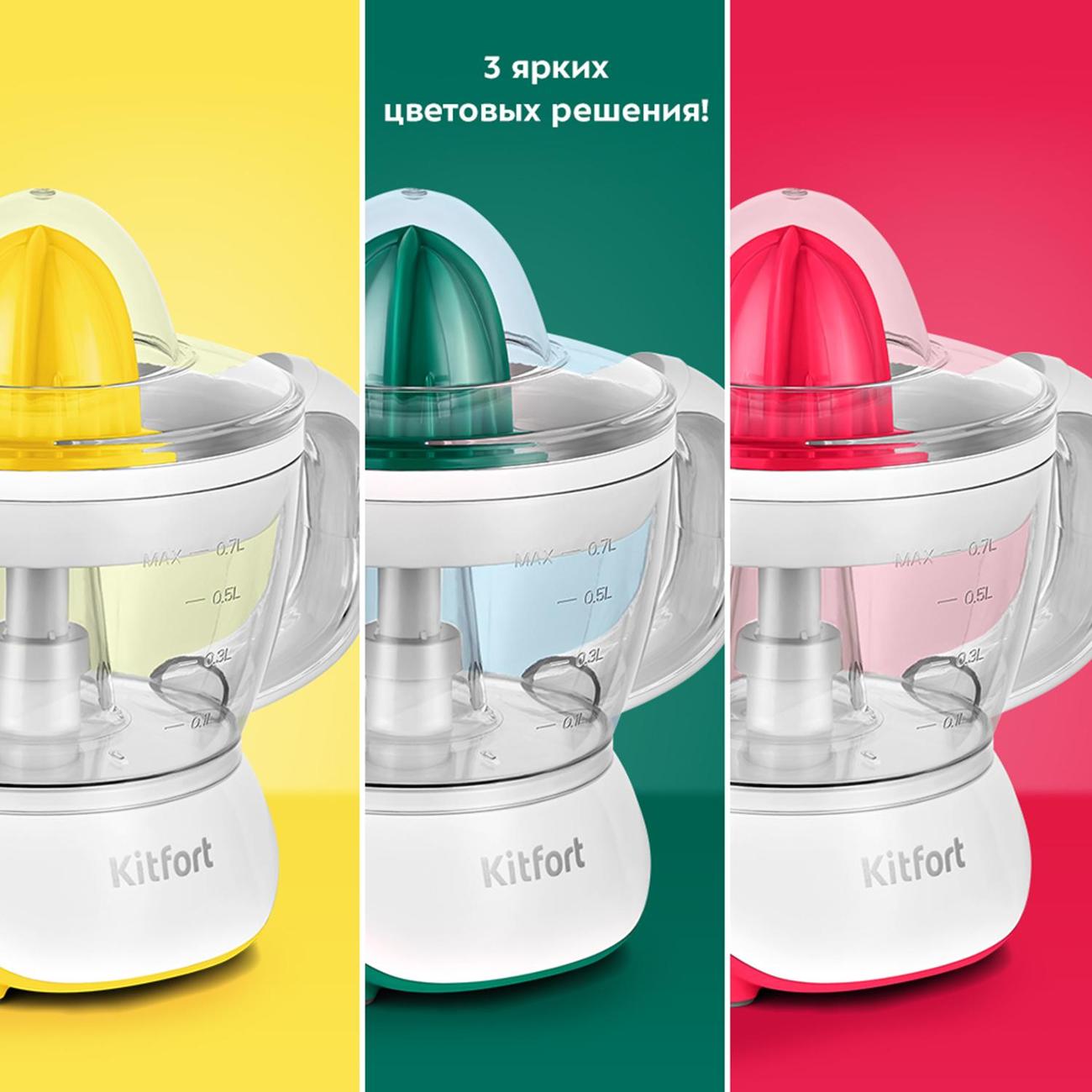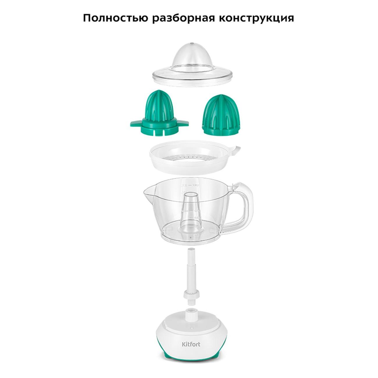 Соковыжималка для цитрусовых Kitfort КТ-1147-2 (белый/зеленый) используется в домашних условиях. С помощью модели можно приготовить фреш или коктейль без предварительной нарезки фруктов на кусочки. Управление устройством осуществляется механическим способом. Прорезиненные ножки обеспечивают устойчивое положение прибора на кухонной поверхности. Длина сетевого шнура — 0,8 м. Носик удлиненной формы обеспечивает удобное наливание напитка в стакан. Габариты: 21x20x14,5 см.