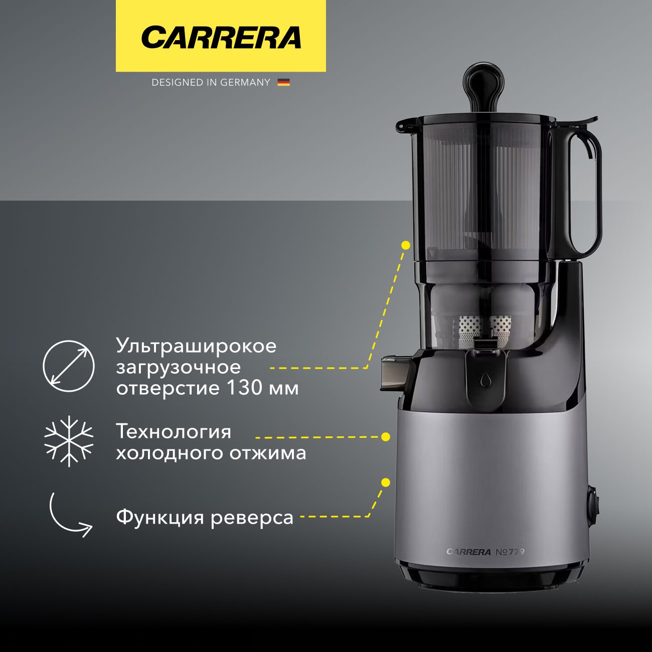 посмотрел наличие по сайту, решил остановиться на этой и уверен что точно не промахнулся. сама соковыжималка сделана достаточно качественно, хороший, тактильно приятный пластик, нормальные детали, мощная, здоровая горловина, очень тихая, разбирается и моется легко, занимает не больше 3 минут на круг, не знаю что еще нужно, мне кажется топ за свои деньги на нашем рынке.