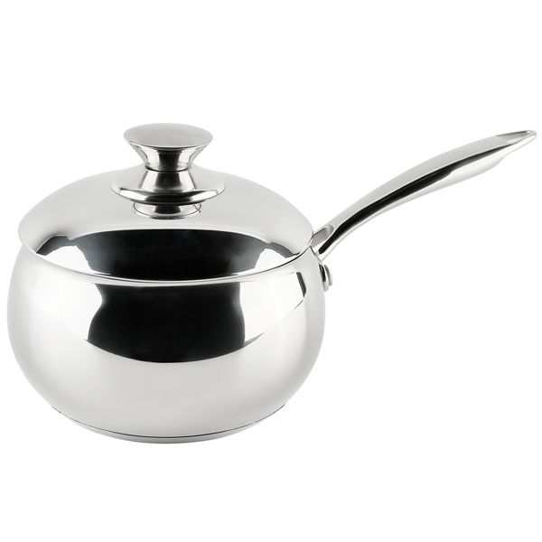 Ковш изготовлен из нержавеющей стали с большим содержанием никеля и хрома, что гарантирует прочность и устойчивость посуды к коррозии и потемнению. Толстое тройное дно типа «сэндвич» обеспечивает равномерный и быстрый нагрев всего объёма. Вы сможете меньше времени проводить на кухне.