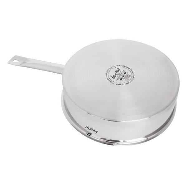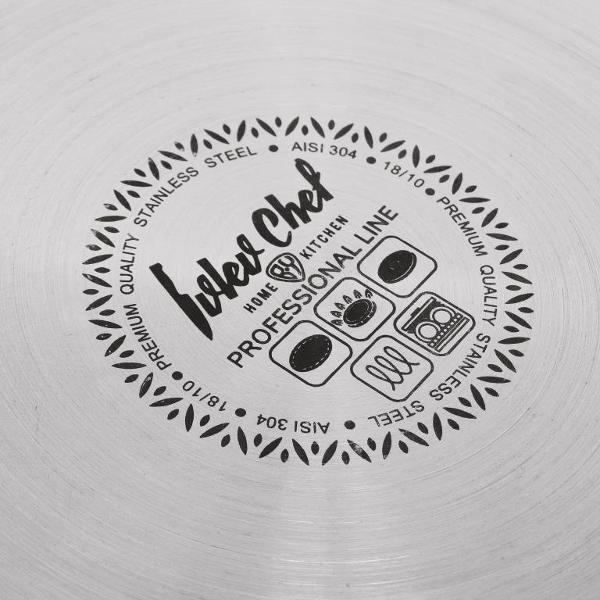 Сотейник Ivlev Chef Home BY Kitchen 822-224 емкостью 3,7 л идет в комплекте с жаропрочной стеклянной крышкой, в которую встроен клапан для выпуска пара. Корпус посуды сделан из стали, устойчивой к образованию коррозии. Диаметр дна равен 26 см. Снизу установлен специальный диск, препятствующий деформации сотейника при частом нагреве. Ручка оснащена термоизоляционным покрытием. Сделана петля для подвешивания. Посуду можно нагревать на всех видах конфорок. Вес составляет 2,925 кг. Разрешена чистка с использованием посудомоечной машины.