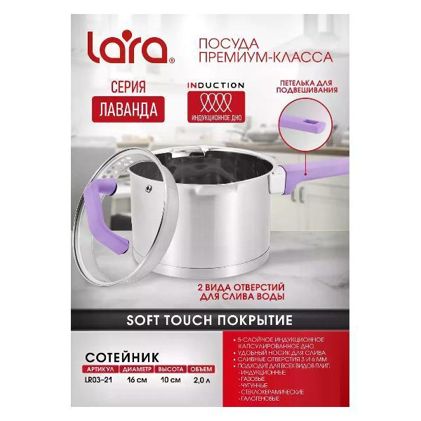 Сотейник объемом 2 литра торговой марки LARA из серии "Лаванда". Этот кухонный аксессуар, выполненный в минималистичном стиле, отлично дополнит интерьер любой современной кухни. Ковшик изготовлен из нержавеющей стали высокого качества, что обеспечивает его прочность и долговечность. Зеркальная отделка придает ему блеск и уникальность. Одним из его ключевых преимуществ является пятислойное капсулированное дно, которое гарантирует равномерное распределение тепла, способствуя быстрому и эффективному приготовлению блюд. Благодаря индукционному дну, сотейник можно использовать на любых плитах, включая индукционные. Мерная шкала на внутренней стороне облегчает контроль за количеством жидкости. Удобный носик для слива и функциональная крышка-дуршлаг с отверстиями упрощают процесс приготовления. Для максимальной безопасности во время использования, ручки не нагреваются и имеют покрытие SOFT TOUCH. Рекомендуется ручная мойка для поддержания идеального состояния. Гарантия производителя 12 месяцев.