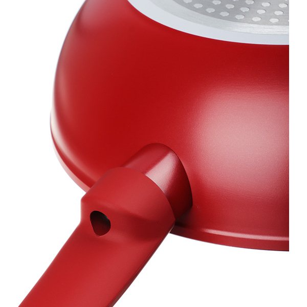 Обычная сковородка, подобных много. из необычного только дизайн, цвет у нее такой прикольный. Таких мало встречается. Обычно все какие-то банальные, черные, серые. Мне такое не хотелось, хотелось что-то поярче, повеселее. Решила попробовать вот красную взять. Очень нравится, как смотрится на кухне. Теперь планирую купить таких же еще. Прикольно смотрится так.