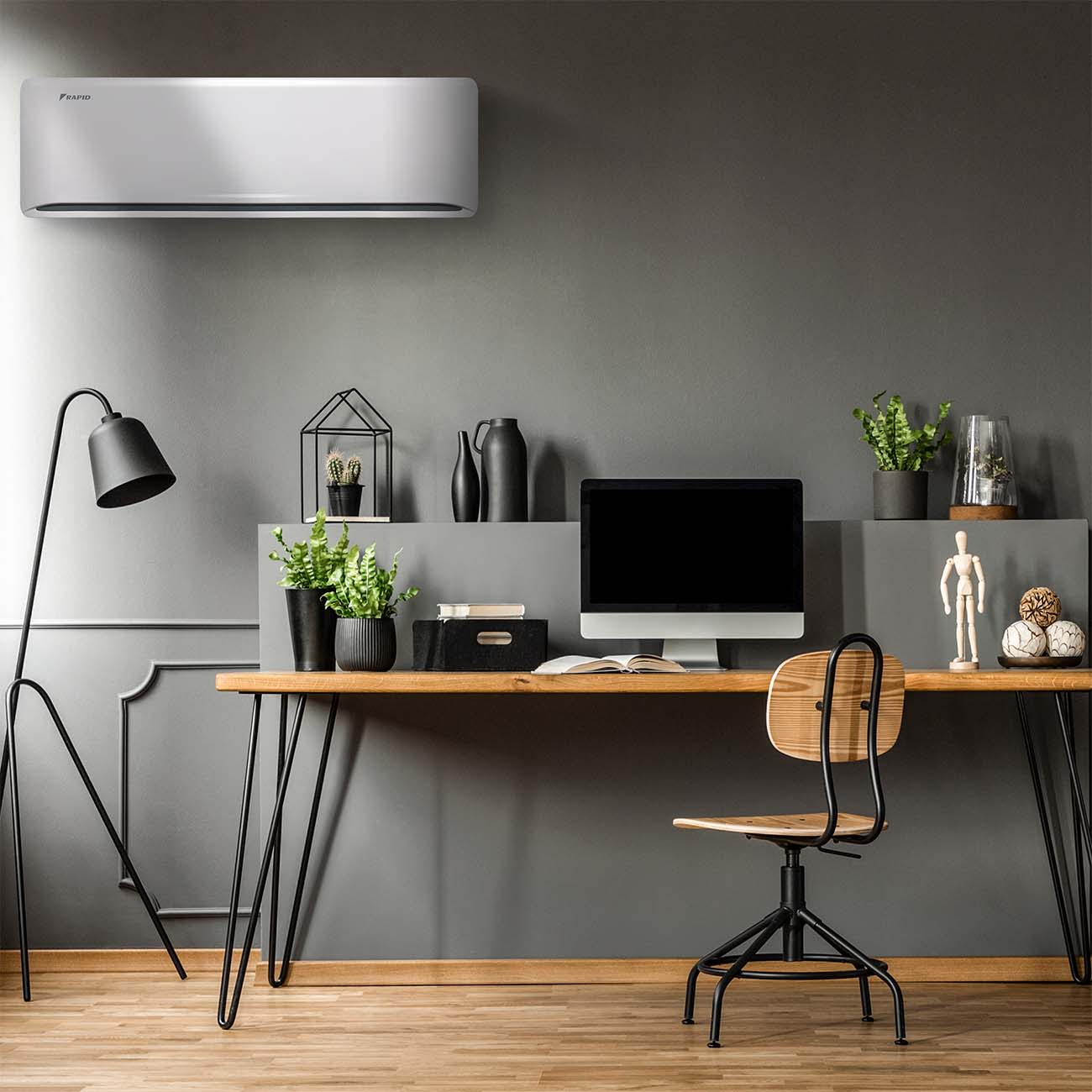 Сплит-система Rapid RAM-07HJ/N1 состоит из внешнего и внутреннего блоков. Она устанавливается в помещениях площадью до 22 кв. м. Кондиционер охлаждает, нагревает и сушит воздух. Есть ускоренный, обычный и ночной режимы. В этой модели реализована технология авторазморозки наружной части.